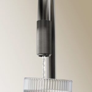 Bateria kuchenna OMNIRES SWITCH to przyjemny opływowy kształt, minimalistyczna elegancka linia i wysmakowane, karbowane detale. Urzekają estetyką i pełnią ważną funkcję zapewniając krystalicznie czystą wodę. Wylewkę ozdabia frezowany pierścień, który wystarczy delikatnie przekręcić, aby napełnić szklankę przefiltrowaną wodą. Ten praktyczny ozdobny detal zaprojektowany został z myślą o najwyższym komforcie użytkowania – nawet mokre dłonie nie ślizgają się po jej powierzchni. Bateria została wykonana z wysokogatunkowego mosiądzu, a jej kształt zapewnia równomierny strumień wody, minimalizując rozchlapywanie się wody.