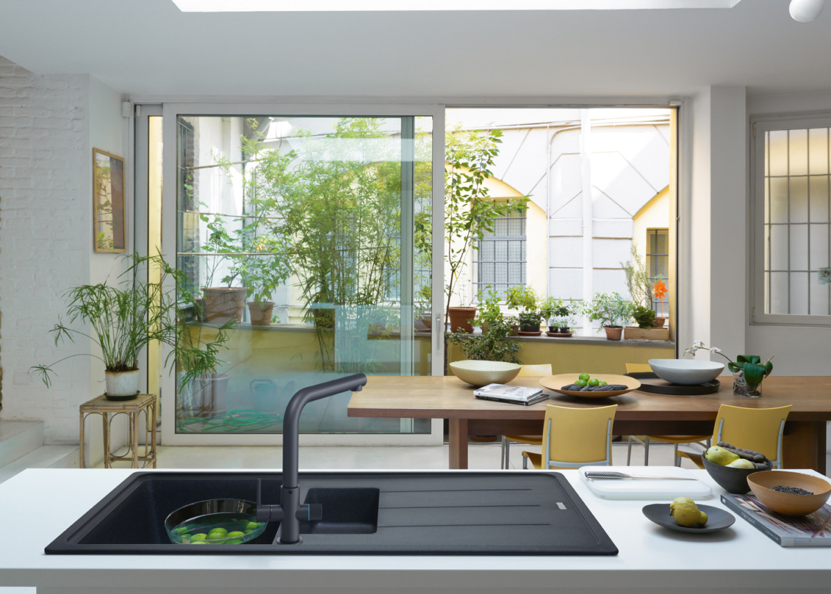 Rodzina baterii Lina wyróżnia się szlachetną prostotą – od minimalistycznej formy po intuicyjną obsługę. Ciepłą i zimną wodę uruchamia mieszacz umieszczony po prawej stronie korpusu, natomiast wodę filtrowaną – okrągłe pokrętło z modnym, ryflowanym wykończeniem. Stała wylewka w kształcie litery J lub L, z kątem obrotu 360°, zapewnia pełną swobodę pracy. Strumień laminarny dla wody filtrowanej zapobiega rozpryskom i pozwala szybko napełnić szklankę, garnek czy dzbanek. Baterie Lina dostępne są w wykończeniu chromowanym lub czarnym matowym, co ułatwia dopasowanie ich do aranżacji każdej kuchni – zarówno nowo projektowanej, jak i już urządzonej. To doskonała bateria trójdrożna do codziennego użytku. Model świetnie współpracuje z nowym systemem filtrującym Lina Clear Water S, który wykorzystuje dwustopniowy proces filtracji. Usuwa z wody zanieczyszczenia o wielkości nawet 0,5 mikrometra, redukuje zawartość pestycydów, chloru i metali ciężkich, eliminuje cysty pierwotniaków oraz poprawia smak i zapach wody.