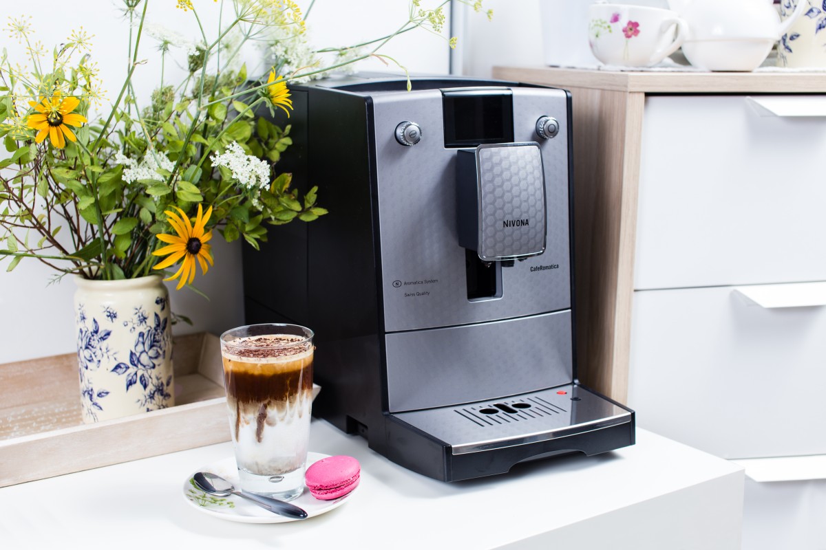 5. Całość zalej świeżym, aromatycznym espresso z ekspresu Nivona CafeRomatica 758. Z systemem pozwalającym na wybór mocy, sam zdecydujesz czy Twoja kawa będzie mocno pobudzająca, czy przybierze wersję light. W temacie rodzaju ziaren – postaw na 100 % Arabikę!