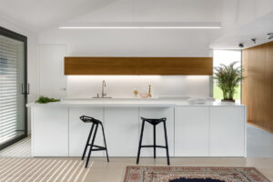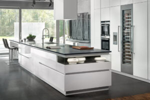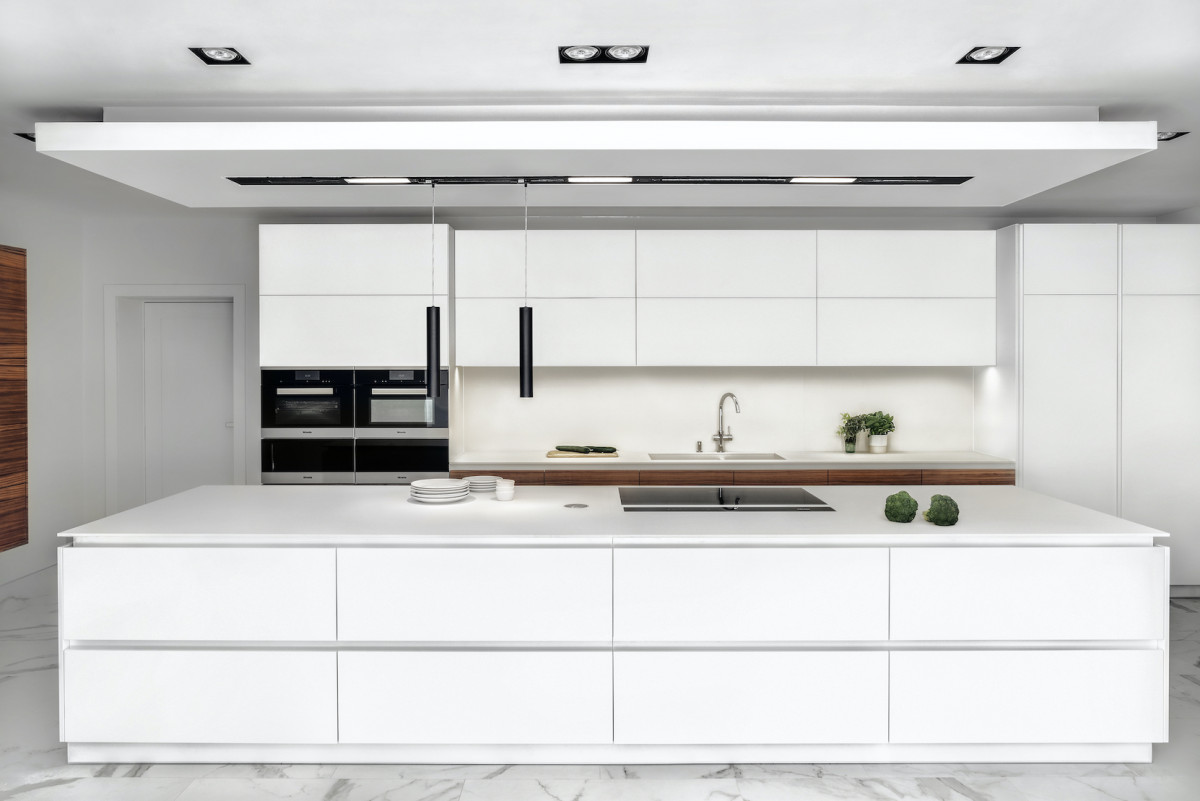 Biel jest jednym z ulubionych kolorów minimalistów. Prowokuje do poszukiwania piękna w prostocie, czytelnych rozwiązaniach aranżacyjnych. Eleganckich, nie pozbawionych też charakteru. Kolor ten idealnie współgra zarówno z drewnem, jak i kamieniem, a dane połączenie albo wzmacnia poczucie świeżości, albo przeciwnie – delikatnie gasi czy przełamuje jej czystość i nieskazitelność. – Wprowadzone do kuchni lite drewno w postaci dużego półwyspu lub niewielkiego barku czy też fornir na części zabudowy, doskonale przełamuje neutralność bieli. Podobny efekt daje kamienny lub kompozytowy blat w jednolitym kolorze z lub z wyraźnym rysunkiem minerałów. Innym rodzajem połączenia jest wysoka biała zabudowa, na której tle wybija się kontrastowo wykończona w kolorze, drewnie lub kamieniu wyspa, której geometryczna forma wyraźnie zarysowuje się w przestrzeni – komentuje Justyna Zajc, współwłaścicielka firm ZAJC.