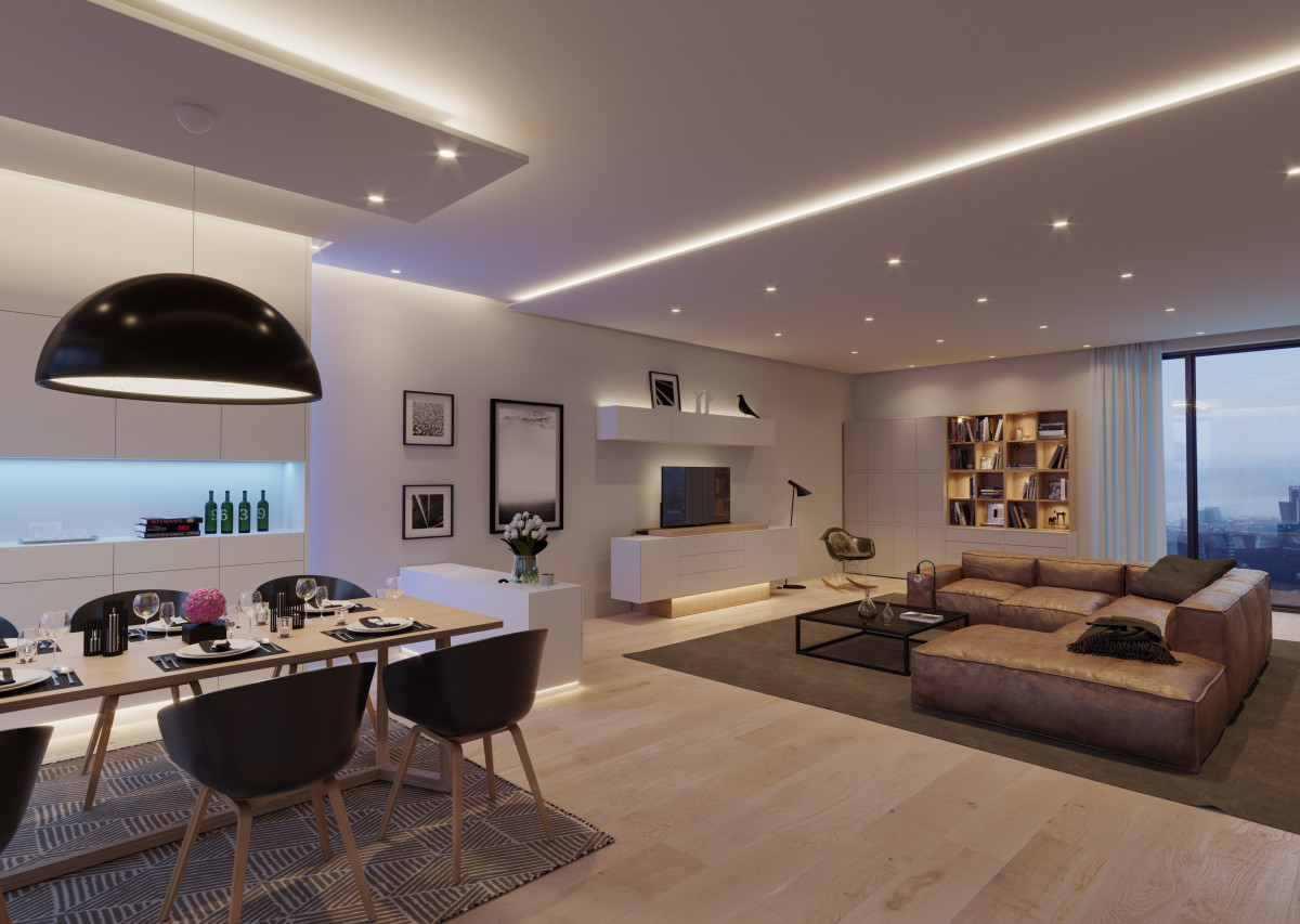 W parze z ciemnymi barwami musi iść odpowiednie oświetlenie, które wprowadza balans i podkreśla kolory. To ważne szczególnie w takich krajach jak Polska, gdzie liczba dni słonecznych nie przekracza stu, a jesienią i zimą zmierzch zapada szybko. – Musimy zatem często zastępować światło naturalne tym sztucznym. W znacznym stopniu wpływa to na nasze samopoczucie i nastrój. Odczuwamy to zwłaszcza teraz, gdy więcej czasu spędzamy w domu. Powinniśmy więc mieć możliwość dostosowania światła do pory dnia czy do aktualnego momentu, inaczej mówiąc: potrzeby chwili – wskazuje ekspert.