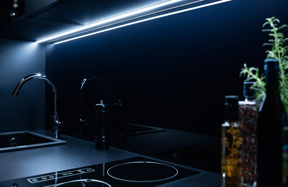 Domeną nowoczesnej kuchni jest spójność, dlatego najlepiej sprawdzą się w niej taśmy LED, które pozwalają uzyskać jedną linię światła. Są piękną dekoracją i pozwalają budować atmosferę. W kuchniach z ciemnymi meblami, które są i będą w modzie, nastrojowe światło to bohater pierwszoplanowy.