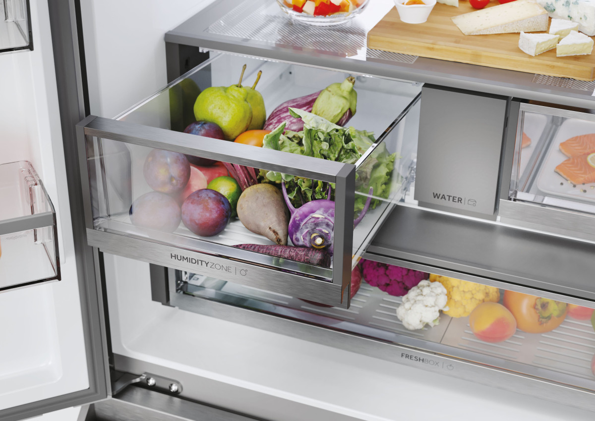 Szuflada My Zone umożliwia dostosowanie temperatury do różnych rodzajów żywności (od 0°C do +5°C). Możemy w niej przechowywać warzywa i owoce, mięsa i sery, owoce morza, produkty przeznaczone do rozmrażania lub wymagające szybkiego schłodzenia. Z kolei szuflada świeżości Fresh Box pozwala utrzymać stałą niską temperaturę, by zapewnić idealne warunki do przechowywania surowego mięsa, ryb, świeżych warzyw oraz serów.