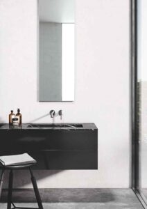 Doskonałym przykładem takiej armatury jest bateria ścienna KLUDI BOZZ. W jej designie umiejętnie połączono minimalizm z delikatnymi liniami oraz klasyczną elegancją. Łagodne, cylindryczne kształty świetnie sprawdzają się zarówno w nowoczesnej, jak i tradycyjnej łazience. W serii KLUDI BOZZ mamy do wyboru baterie chromowane lub w kolorze czarnym. Ciemna, matowa powierzchnia dodaje armaturze dodatkowej elegancji; świetnie odnajduje się w towarzystwie białej umywalki tworząc razem ciekawe, kontrastowe połącznie.
