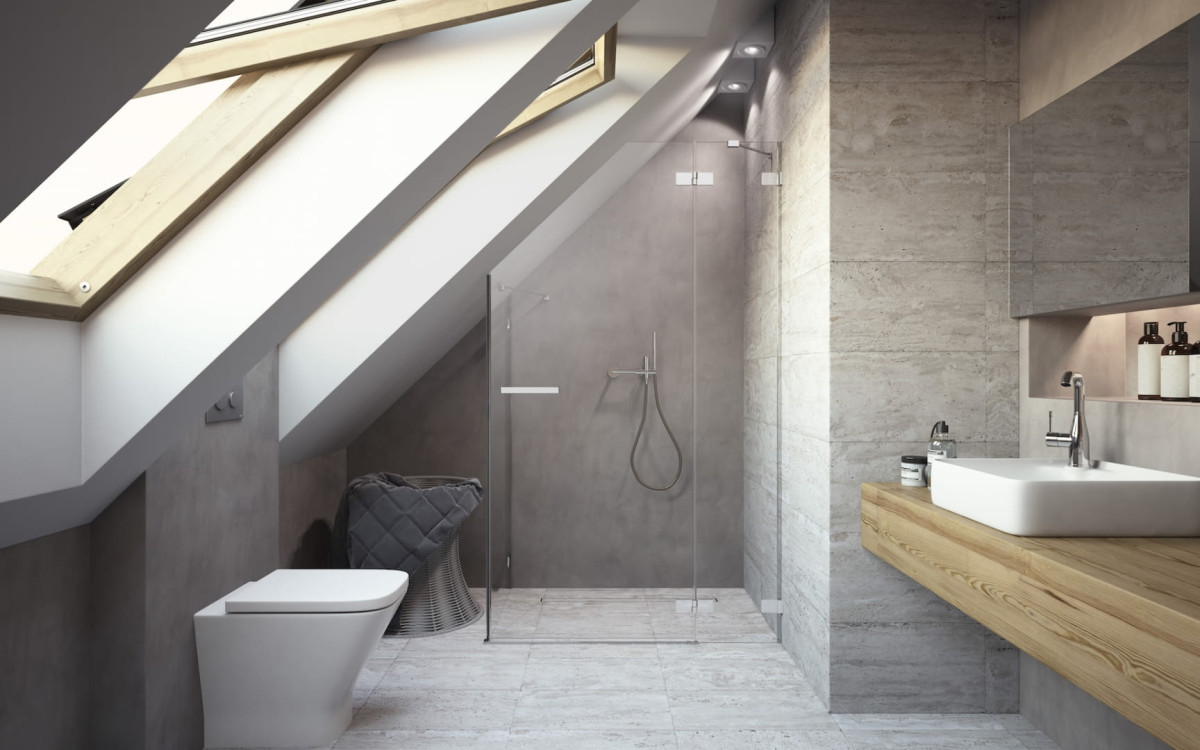 Prysznic w nietypowej scenerii. Nie musimy już rezygnować z aranżowania strefy prysznicowej pod skosem, przy oknie czy w pobliżu niskiej ścianki działowej. Wystarczy dobrać odpowiednio skonfigurowaną kabinę, która idealnie wypełni wyznaczoną przestrzeń – i takie rozwiązania cieszyły się w mijającym roku ogromną popularnością.