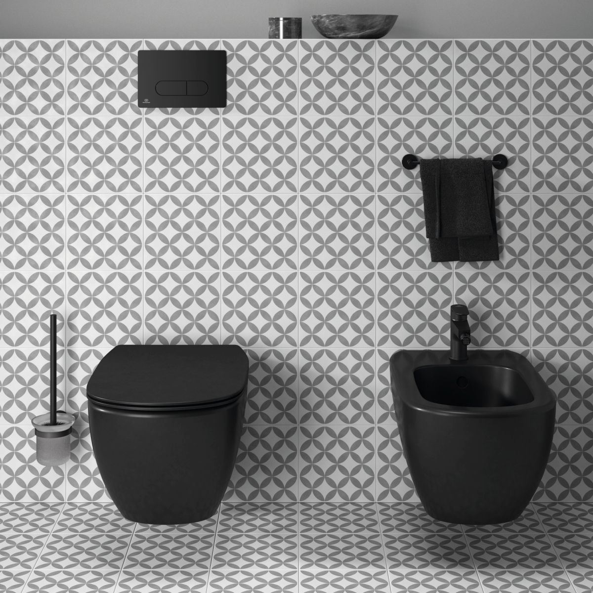 Dzięki nowemu, jedwabiście czarnemu wykończeniu, w szerokiej gamie produktów firma Ideal Standard może zaoferować swoim klientom kompletne rozwiązania łazienkowe. Całkowicie czarny schemat, czy kontrast graficzny z pojedynczymi czarnymi elementami? Wybór należy do Ciebie.