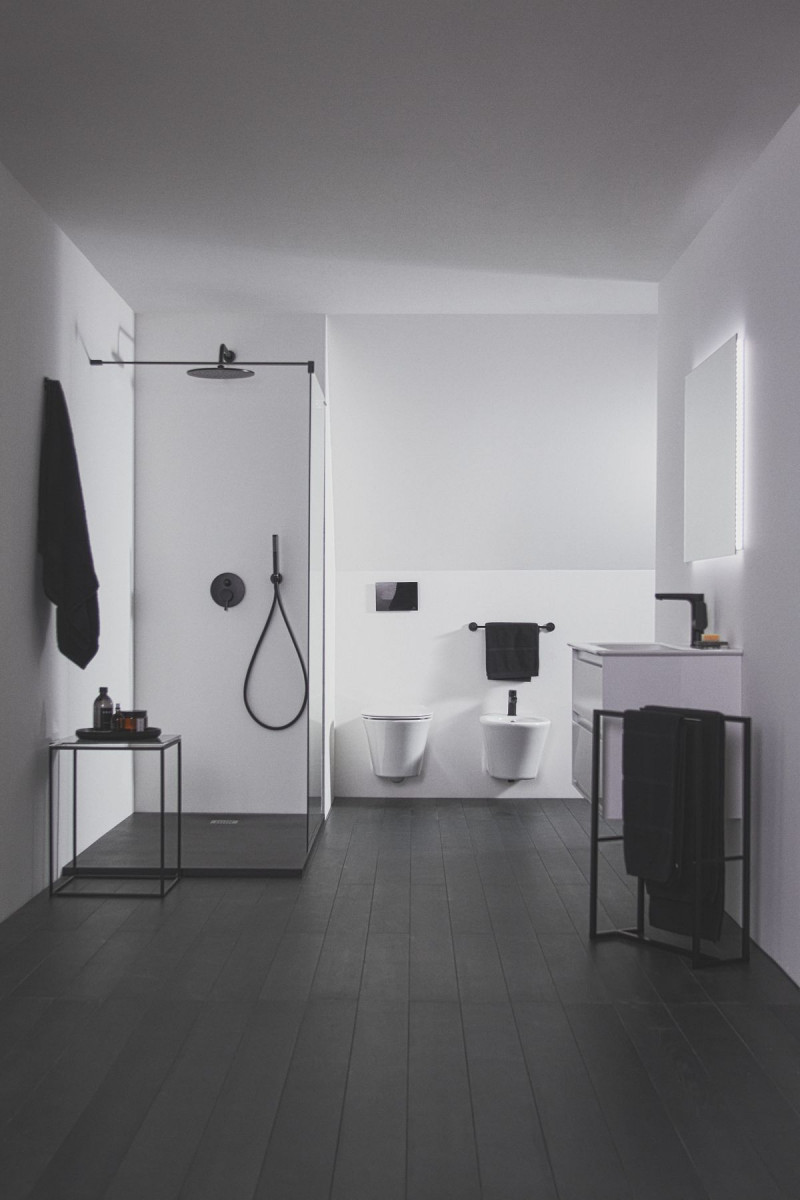 Szafki podumywalkowe, meble oraz ceramikę sanitarną (toalety i bidety) w czarnym kolorze oferuje linia TESI. Smukłe toalety wyposażone są w technologię spłukiwania AquaBlade®, która zapewnia bardziej efektywne i wydajne wykorzystanie wody, a także lepszą higienę.