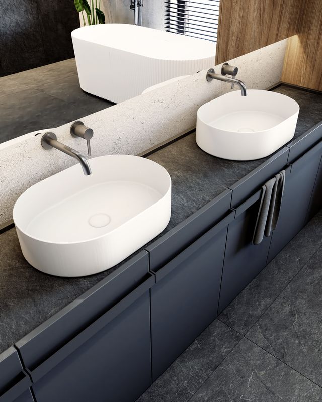 Wykończenie gun metal to jeden z najczęściej wybieranych trendów w nowoczesnych łazienkach. Głęboki, grafitowy odcień nadaje armaturze wyrazistości i doskonale współgra z betonem, ciemnymi płytkami, czernią oraz matowymi powierzchniami.