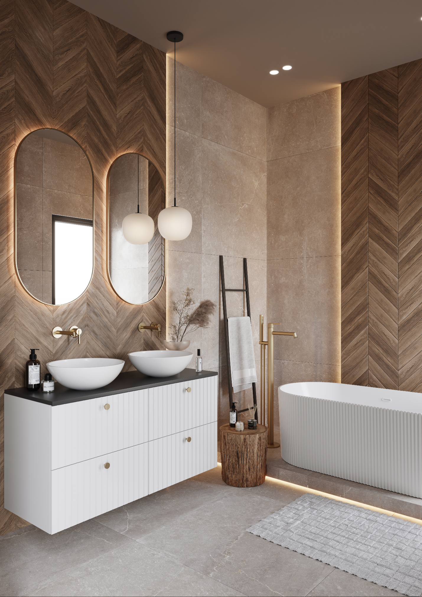 Kolekcja ORI idealnie wpisuje się w nowoczesne łazienki – od surowych, industrialnych przestrzeni po te o stonowanym, minimalistycznym charakterze. Jej prosta, przemyślana forma sprawia, że harmonijnie łączy się z różnymi ceramikami i wyposażeniem.