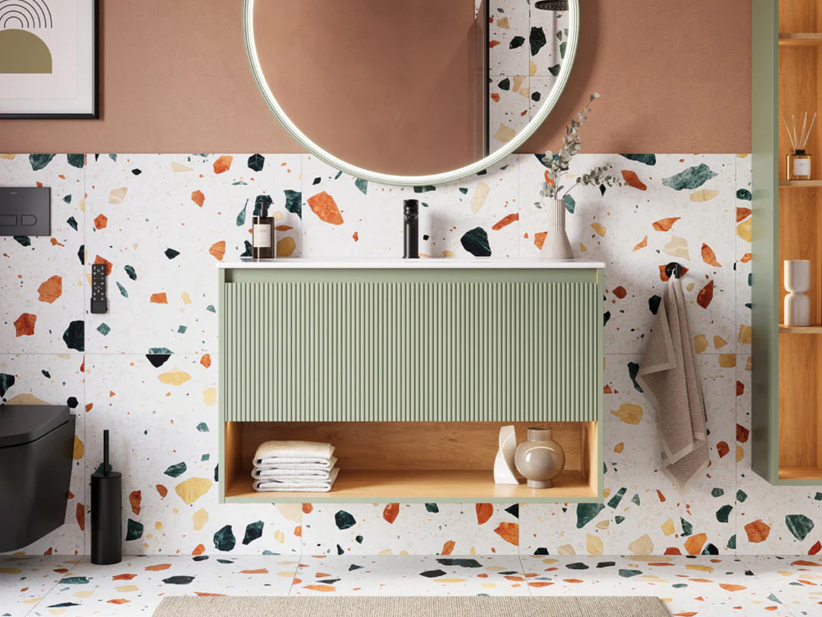 • Duże lustro z oświetleniem LED – nie tylko optycznie powiększy przestrzeń, ale też zapewni dobre światło.
