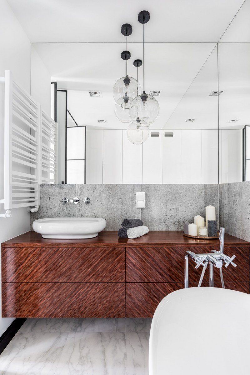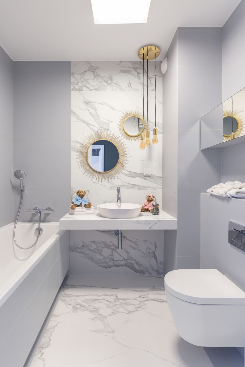 Żarówki na fantazyjnie zamotanym kablu, abażury niczym unoszące się w powietrzu bańki mydlane czy „bukiet” kryształów kuszących biżuteryjnym blaskiem wprowadzą do naszej łazienki niepowtarzalny klimat. Tutaj z oświetleniem można zaszaleć, choć warto mieć na uwadze również względy praktyczne poza samą rolą dekoracyjną – jasne, dobrze rozplanowane światło będzie nam niezbędne.