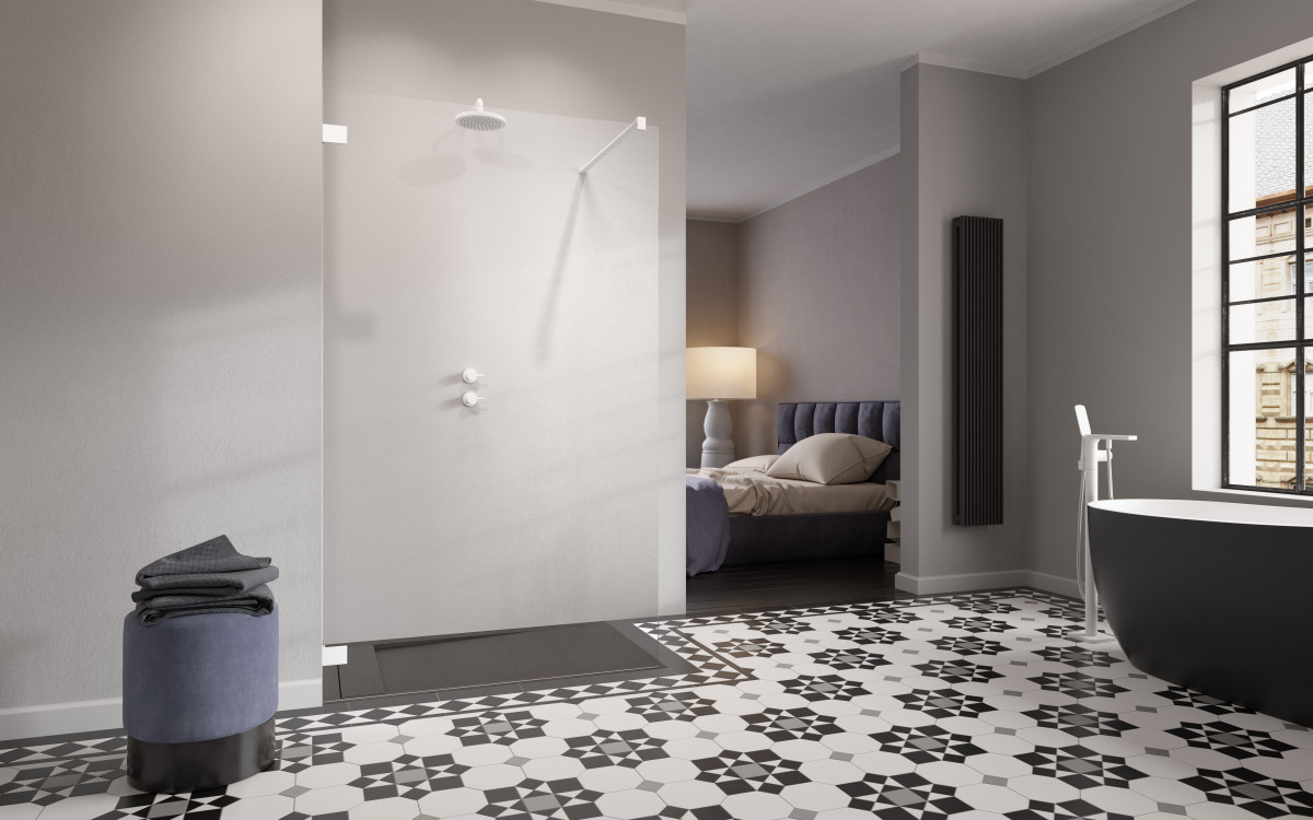 Białe kabiny można także spersonalizować. Będą ciekawie wyglądać w połączeniu z różnymi kolorami szkła lub z wygrawerowanym wzorem czy wielobarwnym nadrukiem na szybie, dzięki czemu staną się wtedy oryginalną ozdobą wnętrza.
