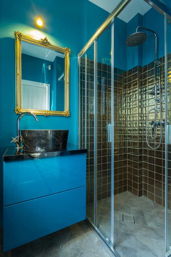 Wanny wolnostojące na nóżkach, żyrandole, aranżacje umywalek na zdobionych stolikach czy konsolach – to wszystko elementy, po których rozpoznamy rokoko we współczesnych łazienkach. Rekomendujemy, aby w przypadku takich aranżacji pozostać przy jasnej, stonowanej kolorystyce, gdzie ozłocone będą jedynie fragmenty: rama lustra, nóżki, akcesoria. Możemy poprzestać na połączeniu bieli ze złotymi zdobieniami i wybrać nowoczesną ceramikę i armaturę, bądź poszukać modeli bardziej vintage.