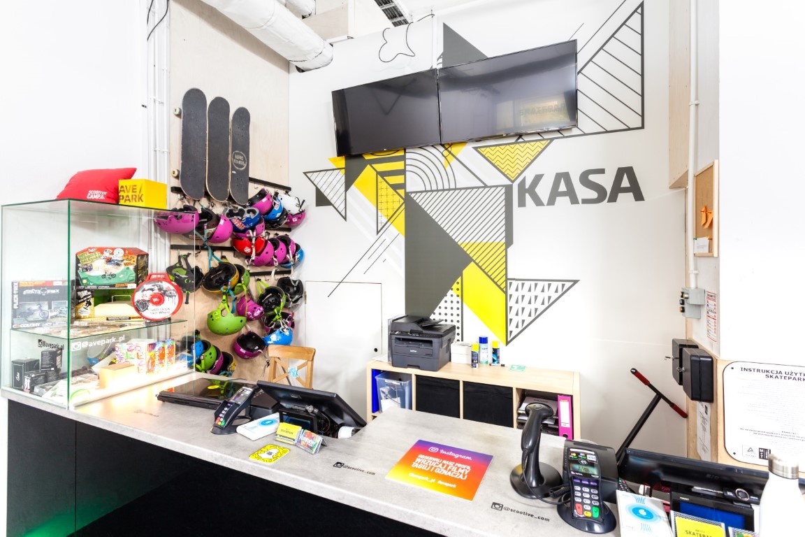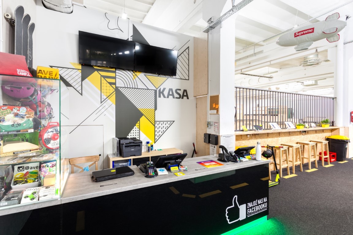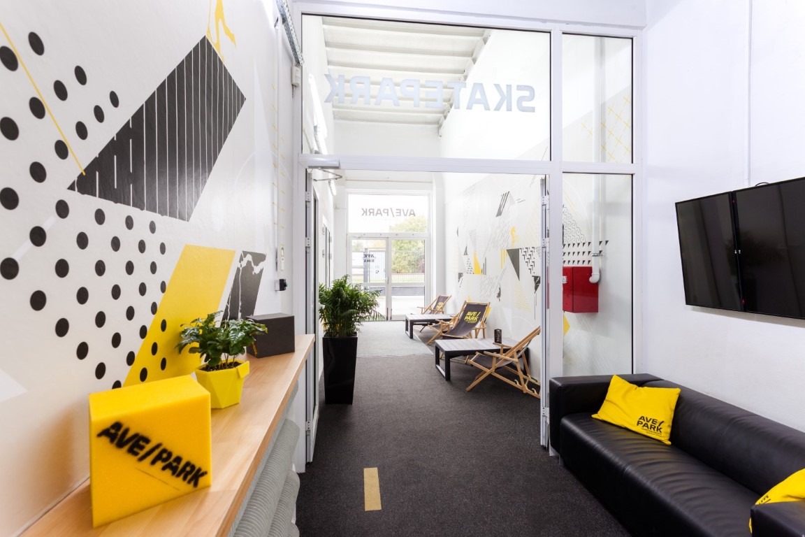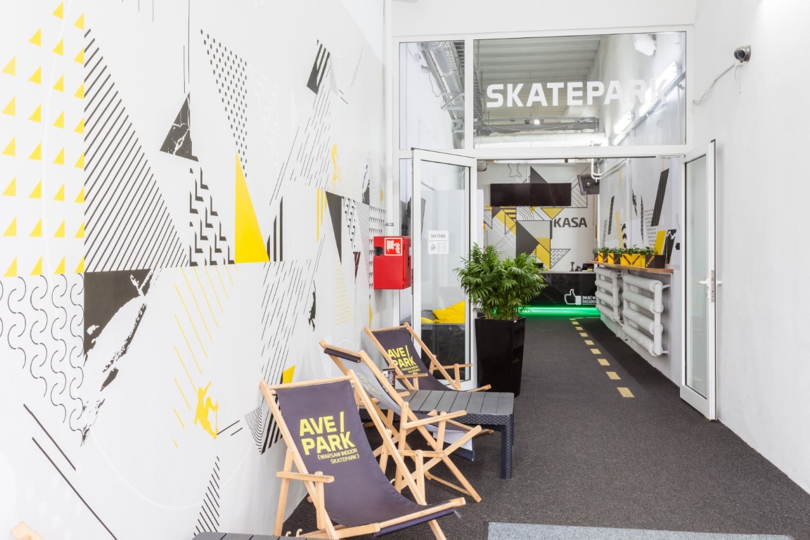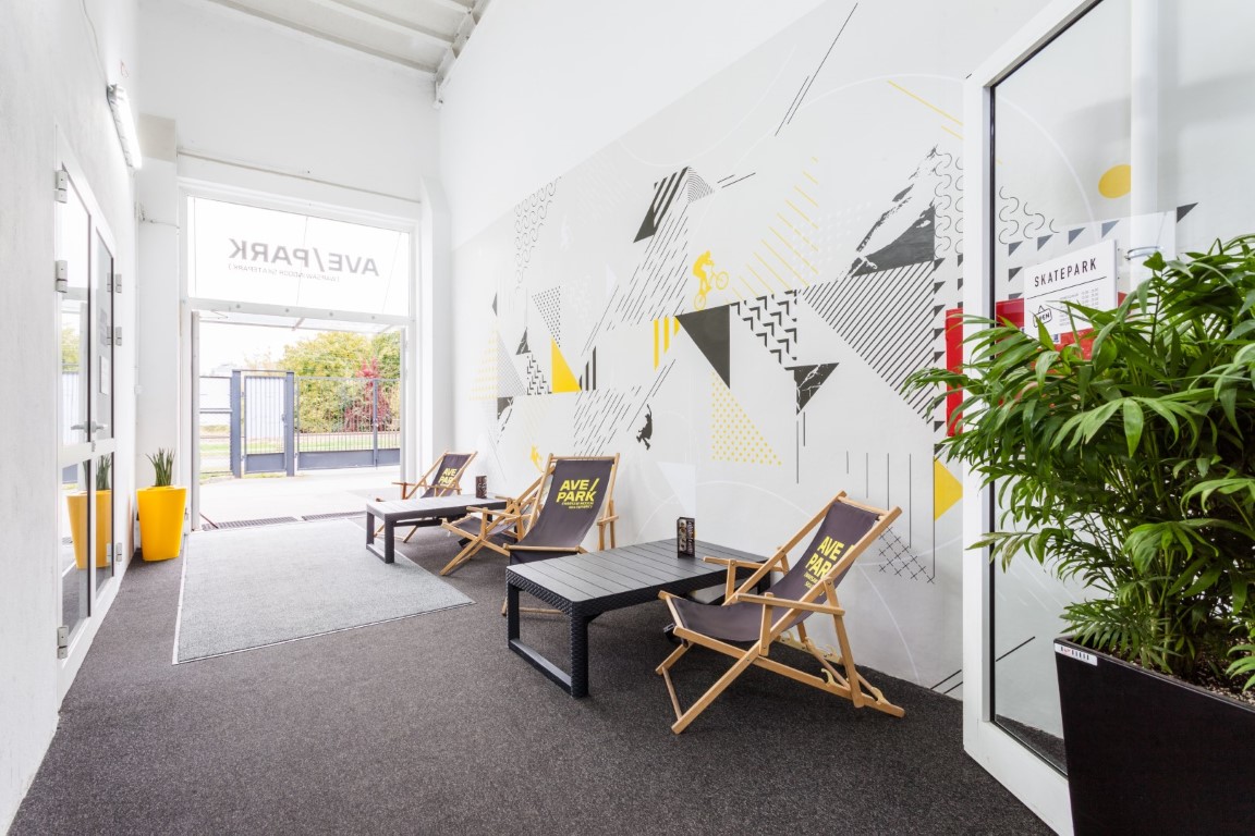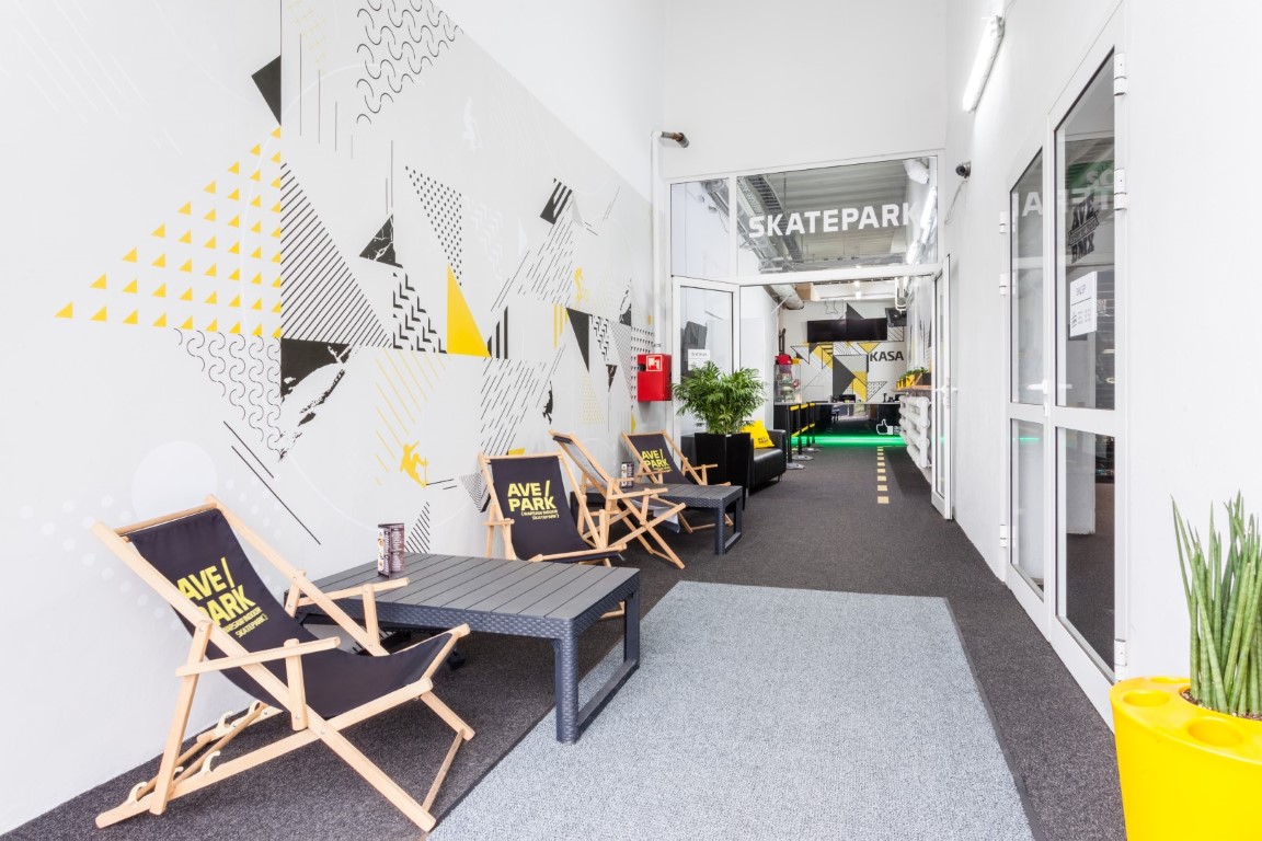 Nowe wnętrze AvePark zachwyca spójnością i dbałością o detale. Wzory utrzymane w firmowych kolorach przypominają o atrakcjach czekających w skateparku – figury geometryczne układają się w rampy i poręcze, a kontrast barw i perspektywa sprawiają, że skaterzy na ścianach wyglądają, jakby byli w ruchu. Młodzi zajawkowicze mogą teraz trenować w przyjaznym otoczeniu, podczas gdy młodsze rodzeństwo i rodzice korzystają z innych udogodnień takich, jak plac zabaw, pokój ciszy, sala gier i strefa fitness.