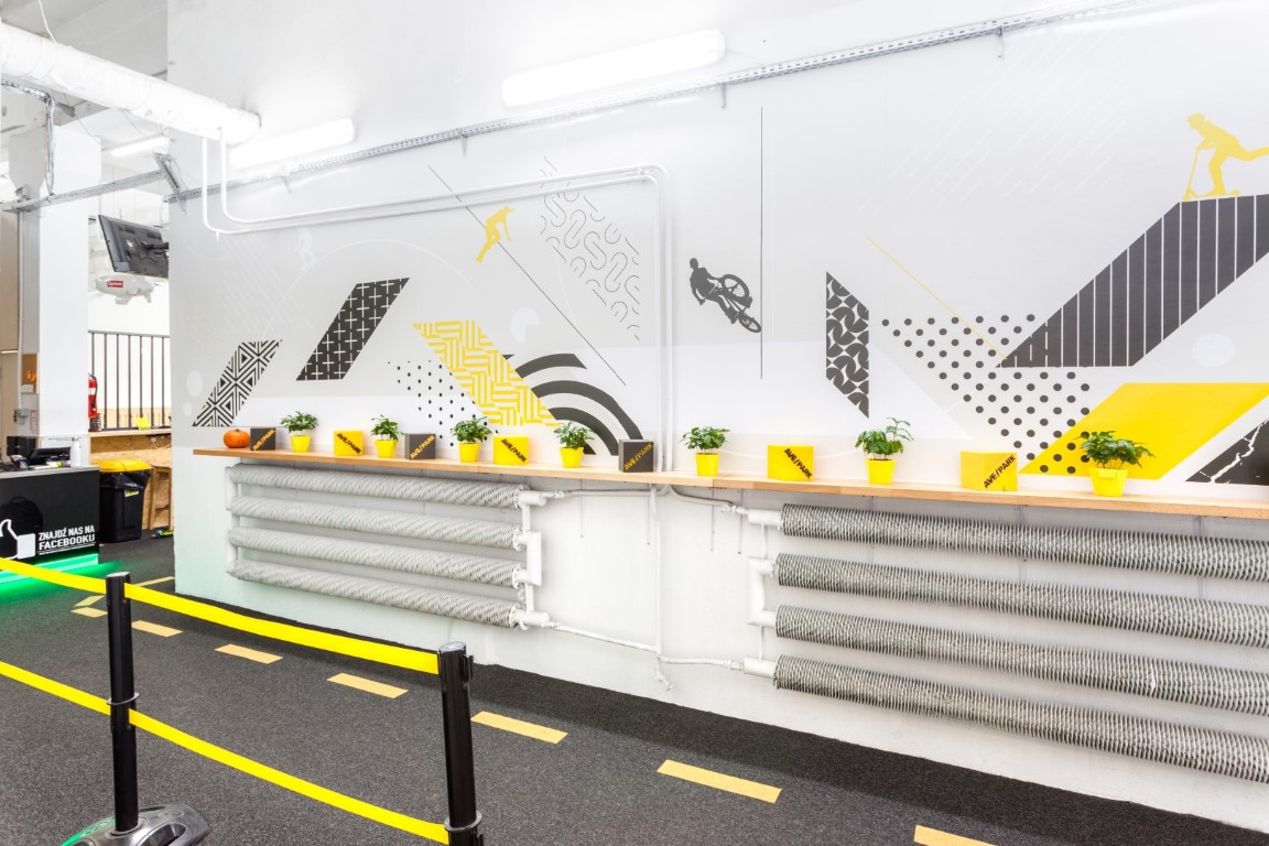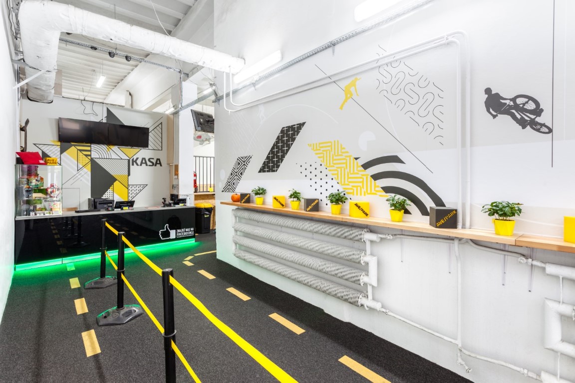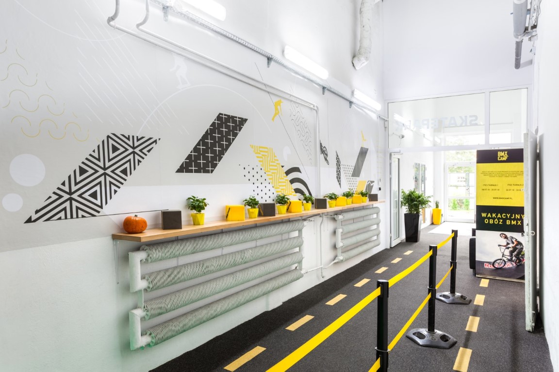 A dam Strzelczyk Senior Graphic Designer Pixers Business opowiada – „naszym zadaniem było stworzenie atrakcyjnego wizualnie miejsca, w którym każdy poczuje się dobrze: dzieci i młodzież korzystająca z atrakcji skateparku oraz czekający na nich rodzice. Zgodnie z wizją klienta nowe wnętrze miało być efektowne i zaskakujące już od samego wejścia, a utrzymane w kolorystyce firmowej minimalistyczne grafiki miały korespondować z atmosferą skateparku”. A Marta Zięba Account Manager w Pixers Business dodaje: „Dzięki kilku sprytnym trickom i wykorzystaniu nowoczesnych materiałów pokonaliśmy wszystkie przeszkody i uniknęliśmy kapitalnego remontu, a postindustrialna hala stała się przytulnym, rodzinnym miejscem wypełnionym kolorem i pozytywną energią”.
