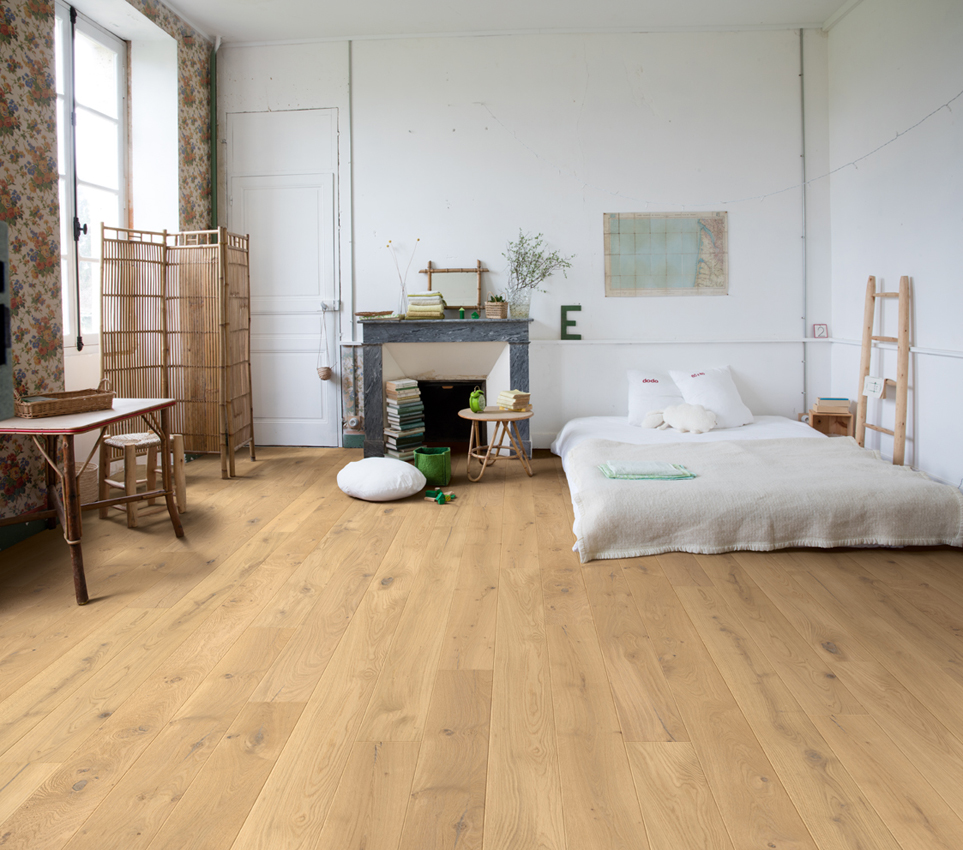 Ale czy podłoga nie musi wyglądać na „zużytą”, aby wpisać się w trend „wabi-sabi”? Niekoniecznie – charakterystyczna dla tego stylu niedoskonałość nie jest cechą charakterystyczną odrębnych elementów, ale przejawia się w ich połączeniu. Na przykład: zestawienie różnych gatunków drewna może tworzy doskonale zbalansowaną, ale daleką od ideału całość”.