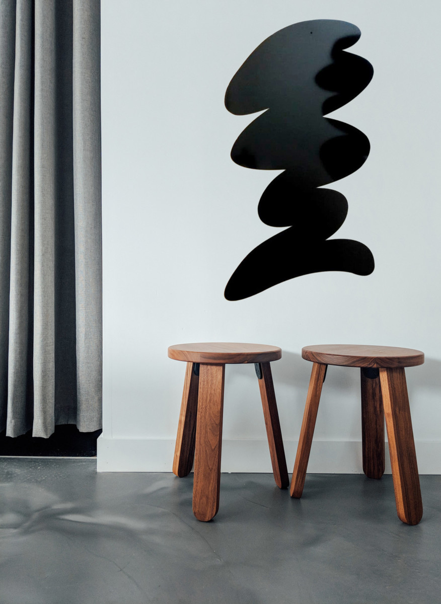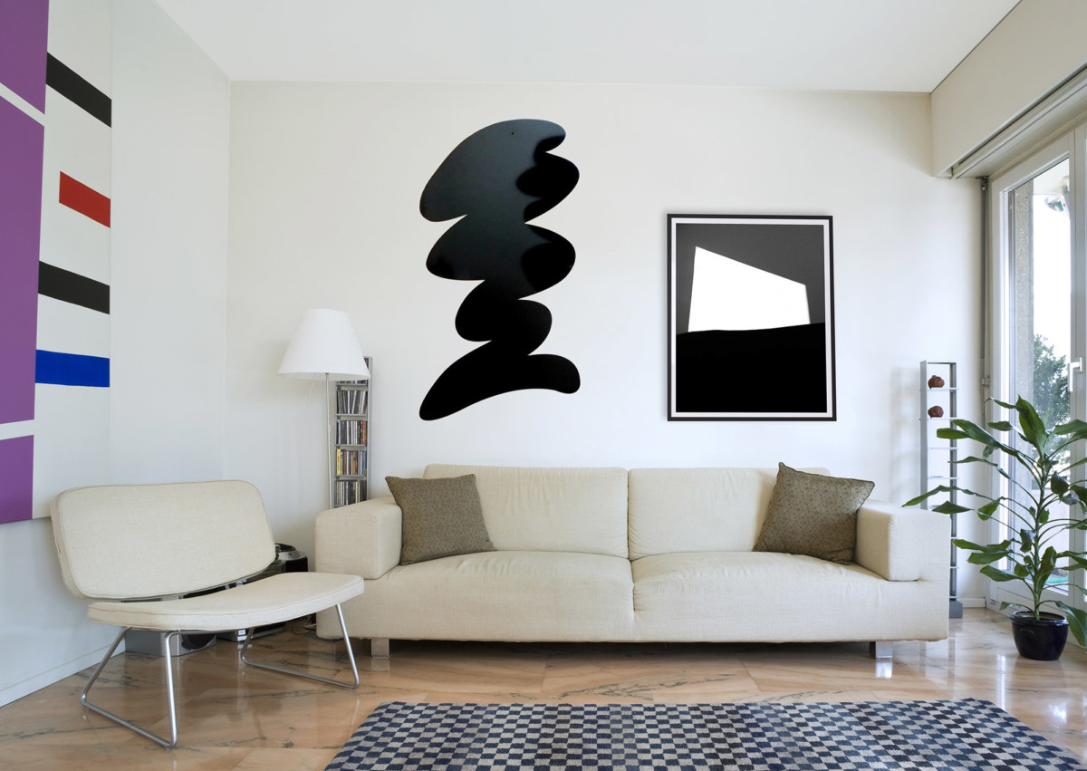 Jedna z polskich artystek, absolwentka architektury wnętrz na wrocławskiej Akademii Sztuk Pięknych, Sylwia Mużyło twierdzi, że niezwykle ponadczasowym tematem przedstawień jest człowiek. Wykorzystując autorską technikę graficzną, stworzyła ona serię różnorodnych grafik, stanowiących dopełnienie jej malarskiej twórczości. Kolor został zastąpiony obrazem monochromatycznym. Na nierównomiernych plamach budujących przestrzeń i nastrój, pojawiają się postaci. Prace odwołują się do wzorców znanych z historii sztuki, choć rysunkowy, nieco warsztatowy charakter świadczy o świeżym spojrzeniu na temat. Eksperymentatorka spontanicznie porusza się po symbolach i konwencjach, preferuje bardziej artystyczne podejście do designu. Z kolei płaskie, rzeźbiarskie formy Giulia Zaneta stanowią przykład bardziej nieregularnych form. Włoski artysta skoncentrował się przede wszystkim na strukturze płaszczyzny i stworzył wielkoformatowe połyskliwe czarne obiekty. Ciekawym rozwiązaniem formalnym, również w eksponowaniu sztuki, cieszy się zestawienie zupełnie odmiennych kształtów dopełniających się nawzajem. Najlepszym przykładem takich działań pozostaje niezmiennie Tom Dixon, projektant lamp z cyklu ,,The Beat Family”, które bez wątpienia można przyrównać do funkcjonalnych dzieł sztuki. Choć tutaj autorem pozostaje jedna osoba, warto przełamać taki schemat i mimo ostrożnego koloru dzieł, poszaleć z zestawianiem różnych technik, wielkości, kształtów czy struktur (mowa tu również o realizacjach kilku artystów/ek na jednej ścianie).