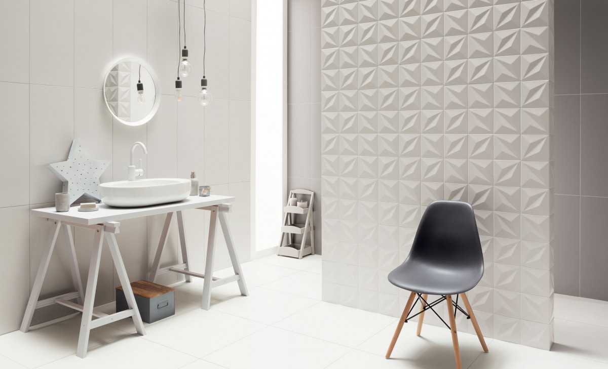 W kolekcji znajdują się nie tylko stonowane, eleganckie, pastelowe zestawy płytek, ale też propozycje dla tych, którzy na wiosnę pragną bardziej dynamicznych zmian. Połączenie bieli i czerni, to ponadczasowy zestaw, który dobrze komponuje się w łazience – bez względu na jej rozmiar. Daje też wiele możliwości na stworzenie unikalnych kompozycji aranżacyjnych.