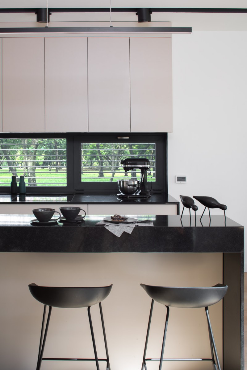 W swoich projektach, Studio.O. wykorzystuje naturalną kolorystykę – barwy ziemi dodają pomieszczeniom uniwersalności i elegancji. Ważna jest również ich symbolika. Czerń w Japonii odpowiada za energię i szczęście. Co więcej, podkreśla geometryczne formy mebli i dodatków oraz nie tworzy kontrastów, subtelnie współgrając z bielą i innymi naturalnymi barwami. Meble MUF charakteryzują się architektonicznym sznytem i prostotą. – Wszystkie łączenia płyt są ukryte, co daje wrażenie jednej scalonej bryły. Nie stosujemy uchwytów ani ozdobników. Zabudowy i meble według nas stanowią tło dla wydarzeń, ludzi i małych detali – głównych aktorów, którzy wypełnią wnętrze – tłumaczy Grzegorz Goworek. Architekci w swoich projektach wykorzystują jedynie naturalne materiały. Kontakt z nimi wzbogaca wyobraźnię, inspiruje i uspokaja. Głównym celem Agi i Grzegorza jest zaproszenie przyrody do domów klientów, a tym samym dostarczenie im naturalnych bodźców oraz stworzenie strefy umożliwiającej wyciszenie zmysłów.