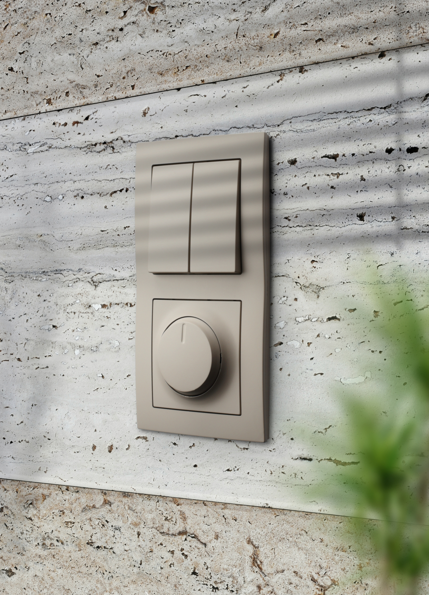 W projektach wnętrz kaszmir sprawdza się jako kolor ścian, zabudów meblowych, tkanin, ale także elementów technicznych, takich jak osprzęt elektryczny. W serii As włączniki i ściemniacze w tym odcieniu stają się eleganckim detalem, który dopełnia aranżację bez efektu „kontrastu technicznego” widocznego przy osprzęcie w bieli czy czerni.