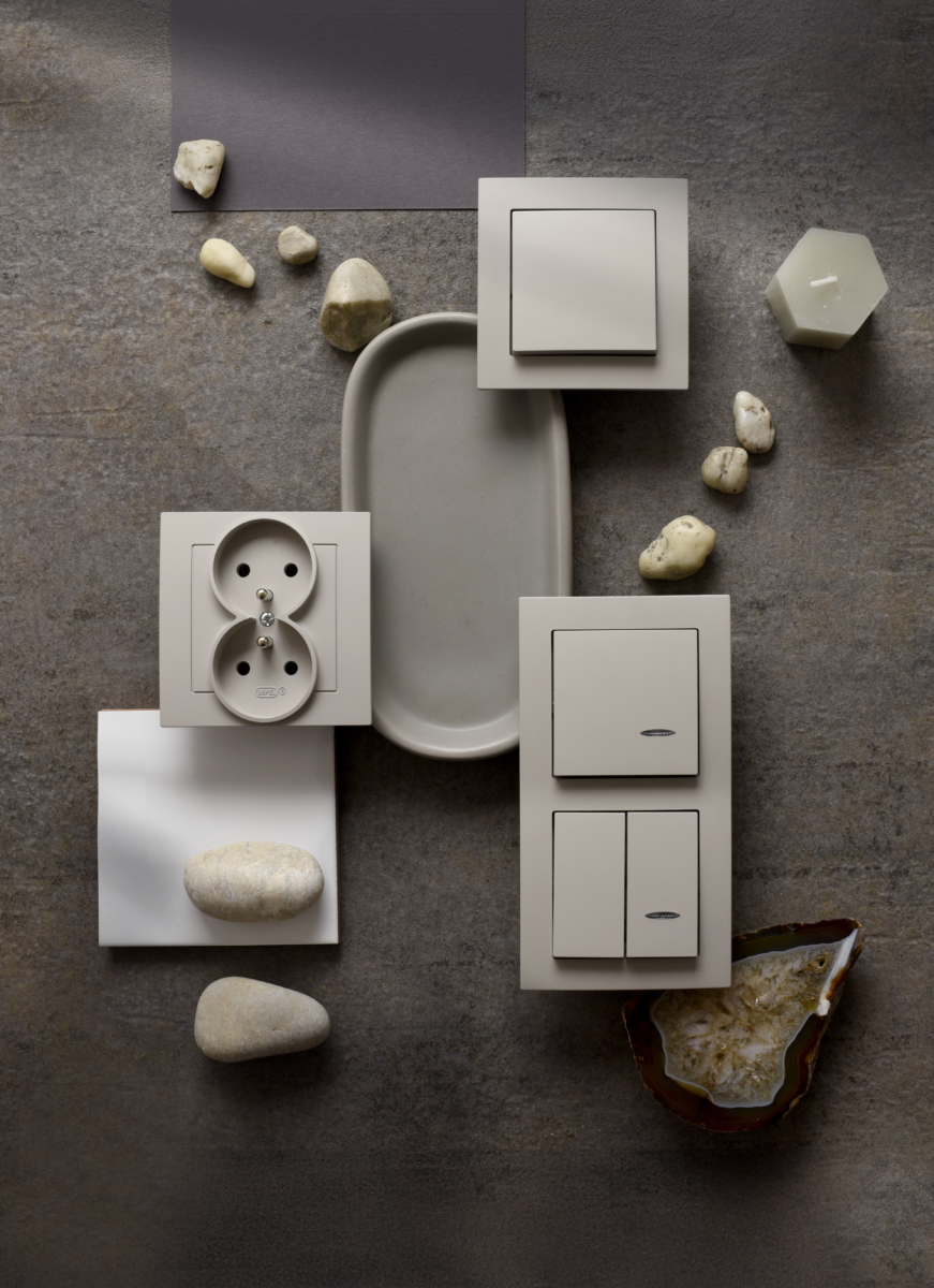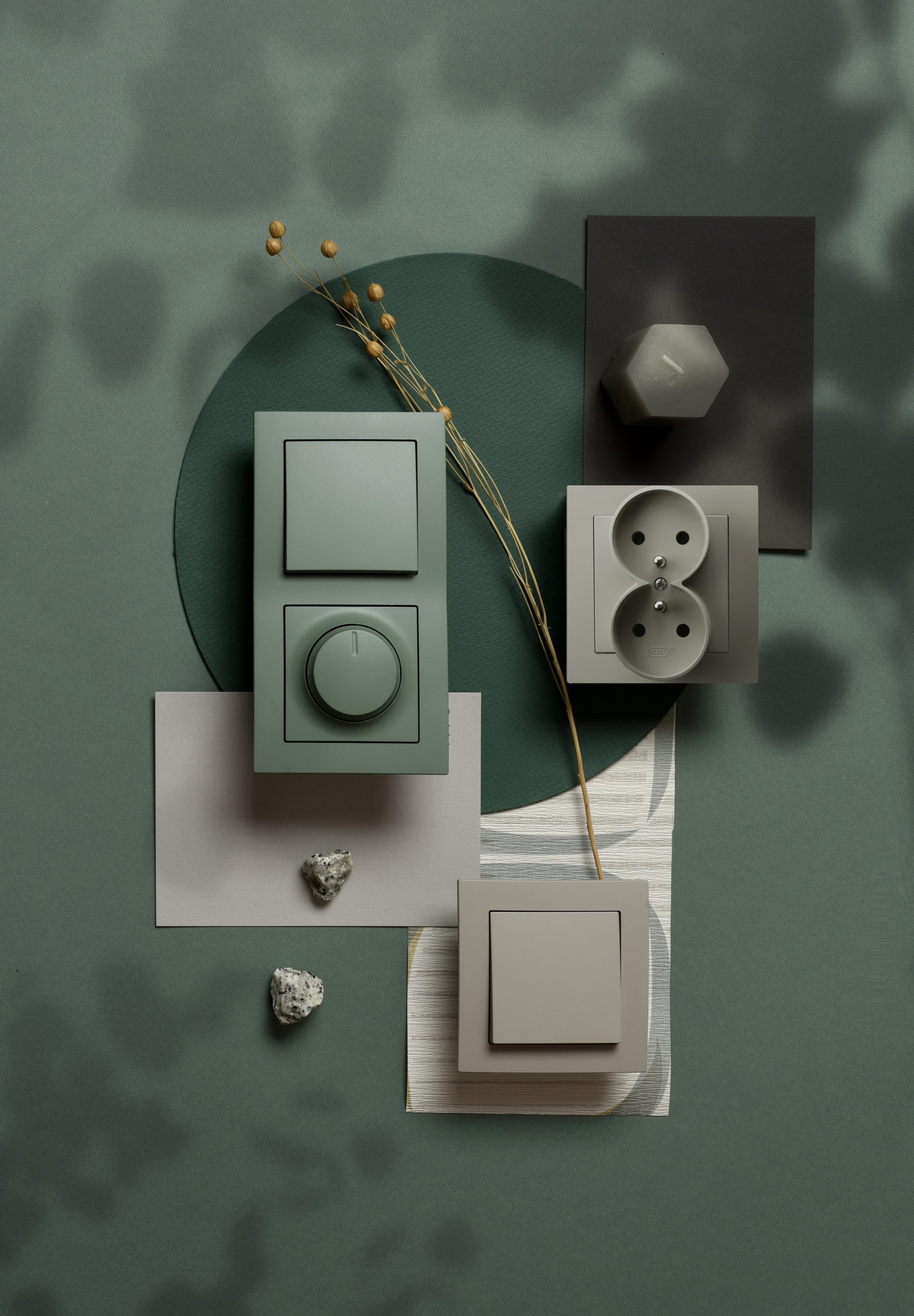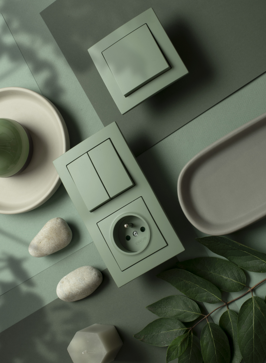Osprzęt w kolorach kaszmir i zielony mat dostępny jest w szerokiej gamie funkcji: łącznikach, gniazdach, ściemniaczach LED, gniazdach USB, elementach multimedialnych. To pozwala zarówno architektom, jak i klientom indywidualnym, zachować pełną spójność estetyczną w całym projekcie.