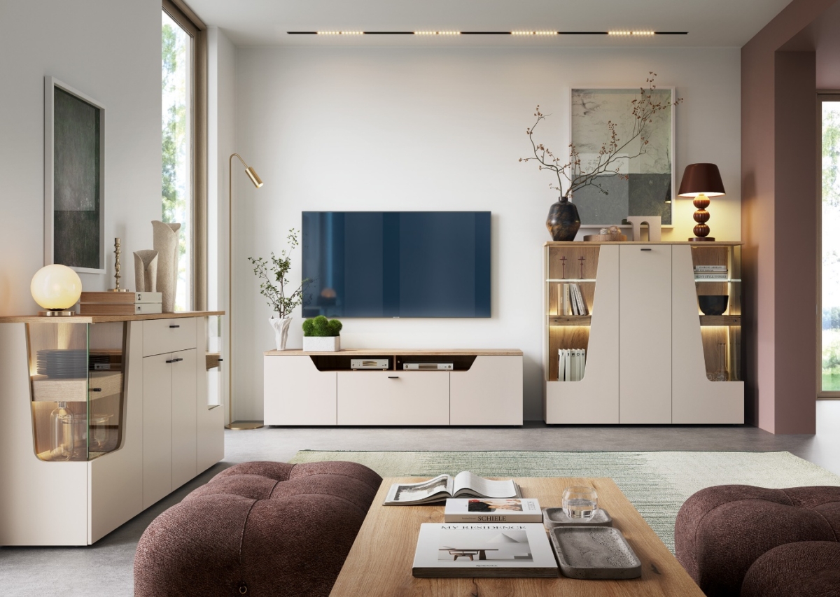 Podczas Black Friday warto skupić się na meblach, które poprawiają wygodę codziennego korzystania z domowych przestrzeni. W salonie najczęściej są to komody, witryny i szafki RTV. Modele w dekorze dębu wprowadzają naturalne ciepło, natomiast kaszmirowe maty i delikatne ryflowania dodają wnętrzu nowoczesnego charakteru. Jeśli cenisz dopracowane detale, zwróć uwagę na kolekcję Cut Out – boczne i frontowe przeszklenia nadają bryłom lekkość, a wbudowane oświetlenie tworzy subtelny akcent, który świetnie wygląda wieczorami.