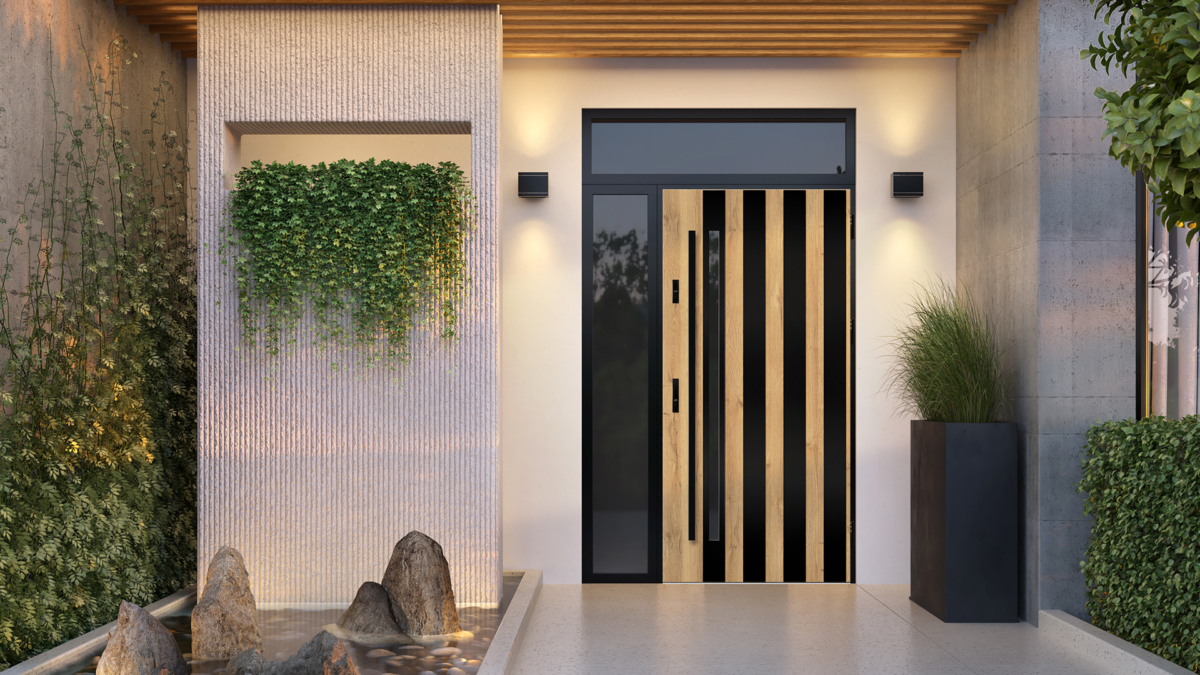 Drzwi zewnętrzne stalowe LANGEN w kolorze dąb naturalny