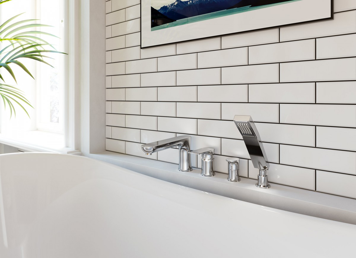 Przeciwwagą dla stylizowanego klimatu łazienki może być strefa umywalki zaprojektowana w zupełnie nowoczesnym stylu. Minimalistyczna szafka podumywalkowa z pojemnymi szufladami, stojąca misa umywalki oraz przystosowana do niej stojąca nablatowa bateria umywalkowa Algeo Square będą idealnie komponowały się z delikatną stylistyką retro. Całości tej strefy dopełni ogromne lustro ze zintegrowanym oświetleniem.