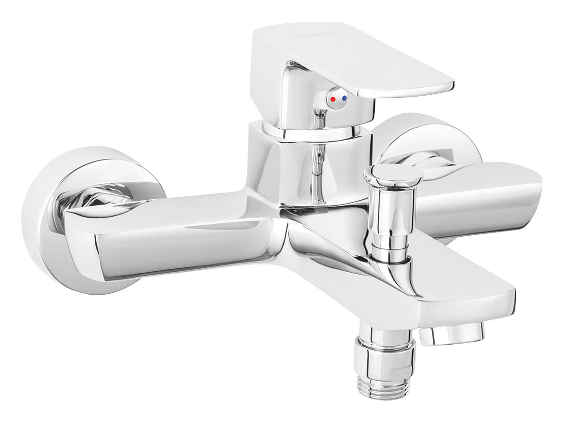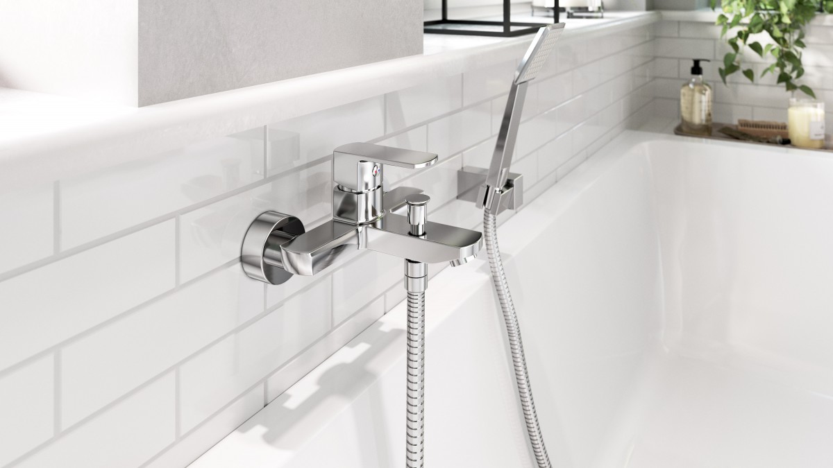 W aranżacji wykorzystano modele baterii z serii Alba VerdeLine marki Ferro. Jednouchwytowa stojąca bateria umywalkowa została wyposażona w regulator ceramiczny, a także w perlator AirMix M24x1. System łatwego usuwania kamienia wapiennego easy clean pomaga w szybkim utrzymaniu jej w czystości. W zestawie jest korek spustowy klik-klak. Bateria wannowa z tej samej linii ma przełącznik wanna/natrysk i ogranicznik przepływu dla natrysku. Oba modele są ekologiczne, funkcjonalne, a zarazem atrakcyjne. Zostały pokryte błyszczącą chromowaną powłoką. Cechuje je nowoczesny design: geometryczna forma korpusów, prosty kształt uchwytów i wylewek z łagodnymi zaobleniami na krawędziach.