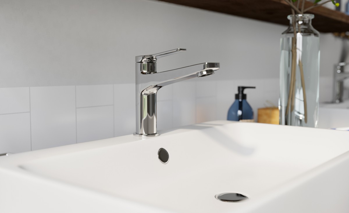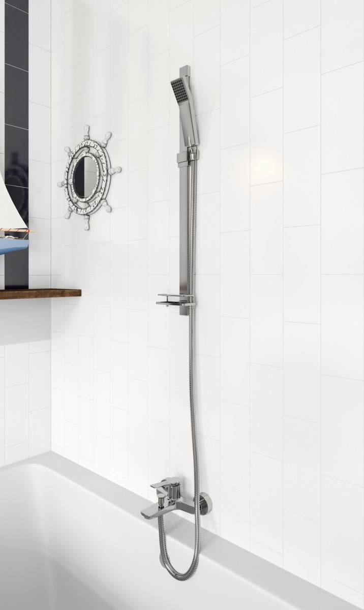 Aby zapewnić sobie wygodną pielęgnację, musimy zadbać o jakość sprzętów, przede wszystkim armatury. Niech zatem w łazience, podobnie jak na załączonej aranżacji, znajdzie się bateria wannowa ścienna należąca do kolekcji Stratos. Baterie z tej serii wyróżnia nowoczesny design. Płaskie uchwyty zestawione z delikatnie zaokrąglonym kształtem korpusów znakomicie podkreślają modny charakter łazienki. Baterii wannowej zaopatrzonej w regulator ceramiczny i automatyczny przełącznik wanna/natrysk z blokadą towarzyszy natrysk z 1-funkcyjną płaską rączką Quadro o ładnej, geometrycznej formie.