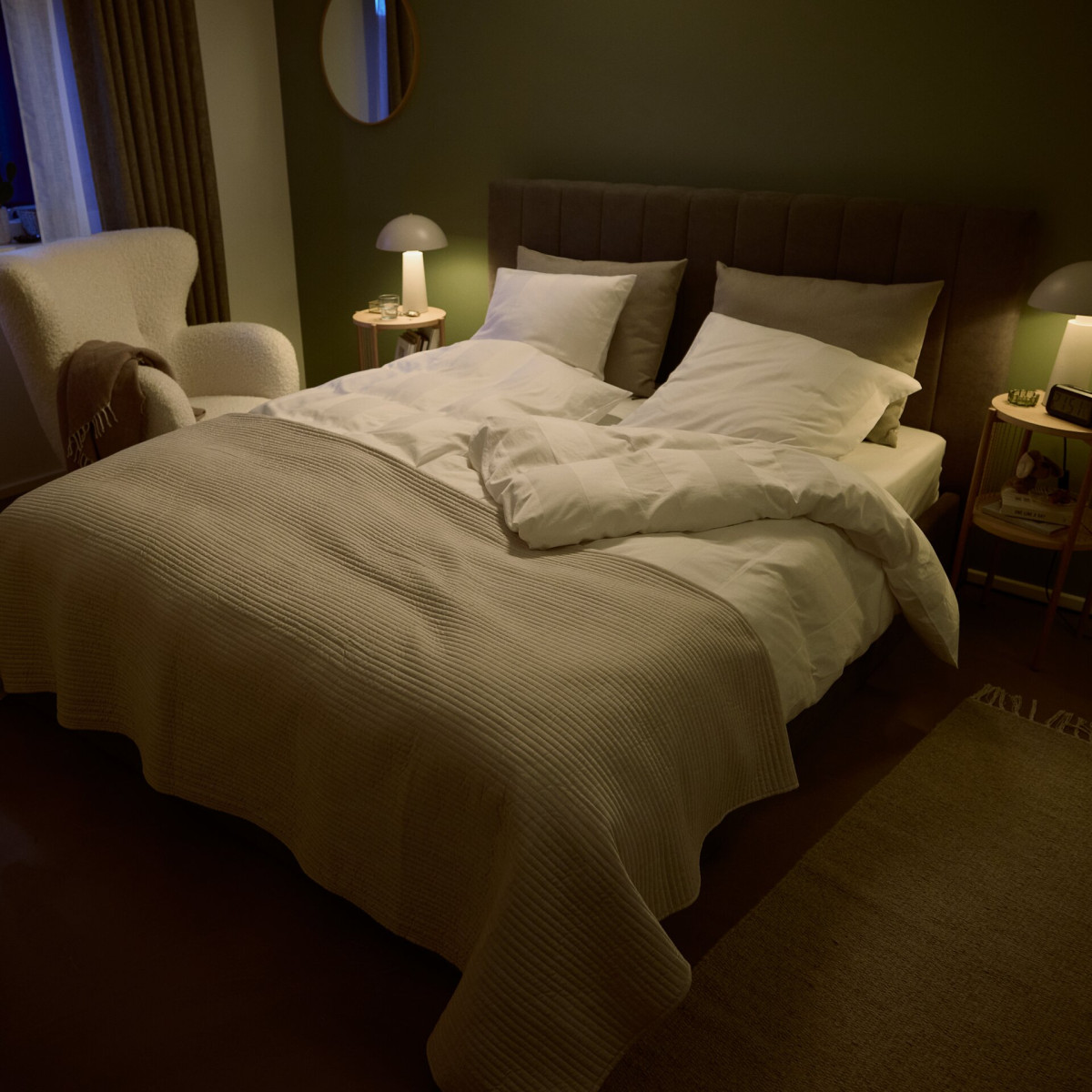Kołdra na wiosnę: Warto postawić na kołdrę średniej grubości, np. kołdra z wsadem syntetycznym VIKANES, będzie odpowiednia na zmieniające się temperatury wiosenne. Kołdry wypełnione włóknami silikonowymi lub bawełnianymi zapewniają odpowiednią cyrkulację powietrza, co zapobiega przegrzewaniu.