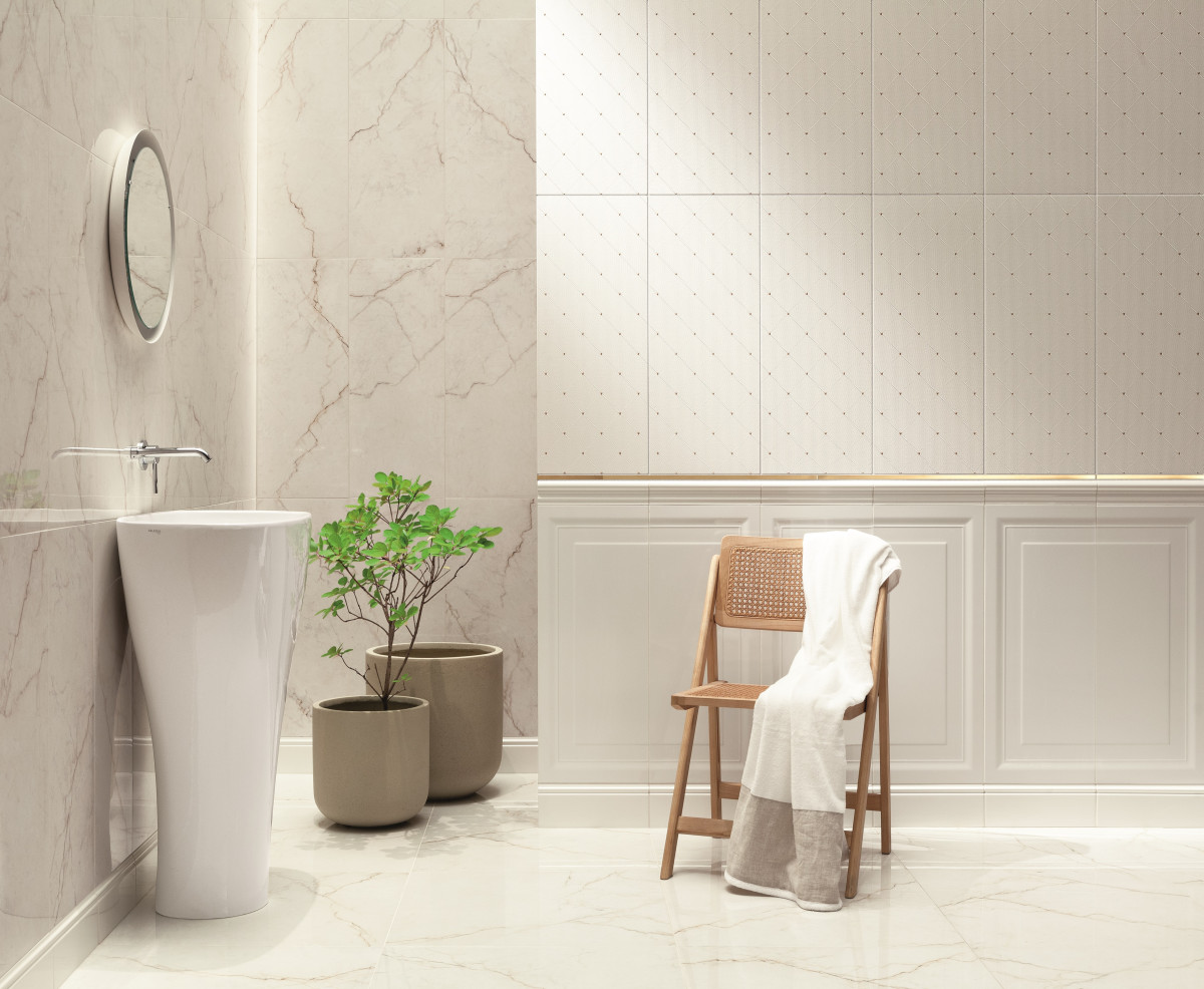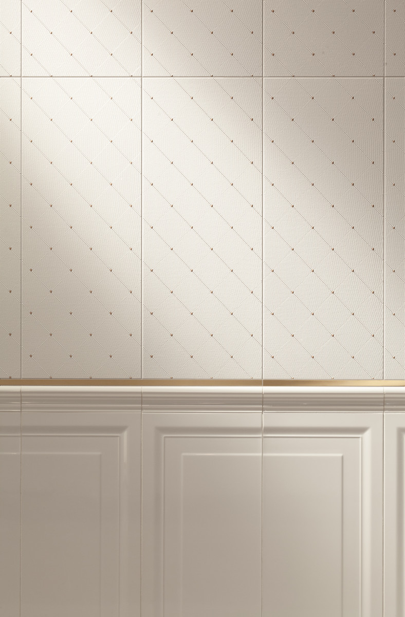 Dopracowane, regularne wzory budują nie tylko harmonijne, ale również proporcjonalne i eleganckie przestrzenie. A jeśli pojawiają się w nich nienarzucające się złote ekspresje, we wnętrzu zagości ciepło oraz subtelność. W przypadku kolekcji Lumiere od Grupy Tubądzin piękne białe płytki z drobnymi złotymi elementami przywodzą na myśl miękkość i lekkość puchu. Równocześnie rozpromieniają aranżację taktownym błyskiem i wytwornością, które pozwolą wyeksponować iście karnawałowy look.