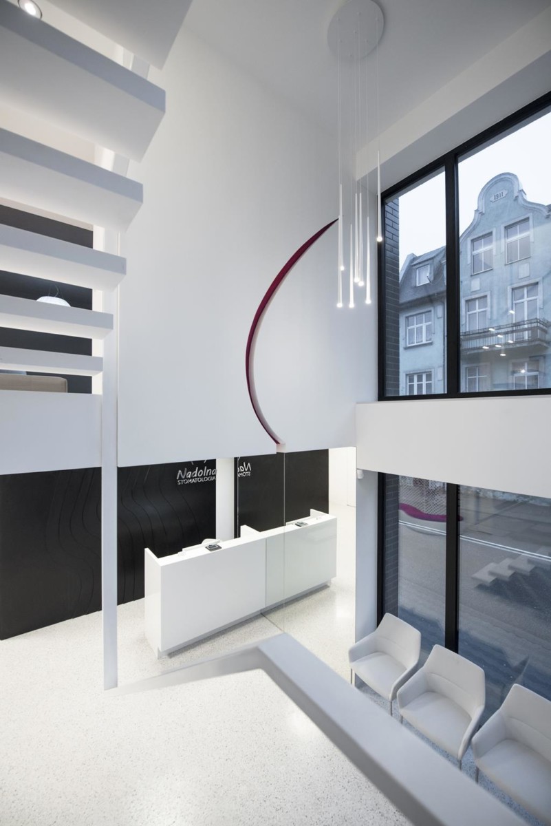 Prace obejmowały adaptacje starego budynku – kamienicy w centrum miasta. Inwestor prowadzi już gabinety stomatologiczne w innym mieście, dodatkowo chciał otworzyć placówkę właśnie w Bytowie. Pracownia LOFFT architektura zajęła się projektem zewnętrznej bryły, jak i wnętrza. Dzisiaj „Stomatologia Nadolna” to 180 m² czyli trzy gabinety zabiegowe, recepcja oraz poczekalnia.