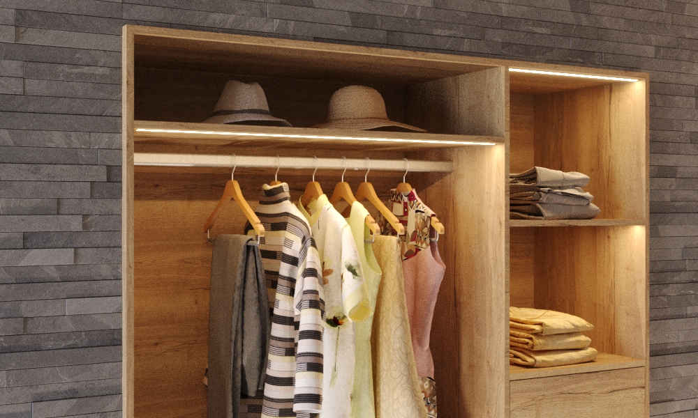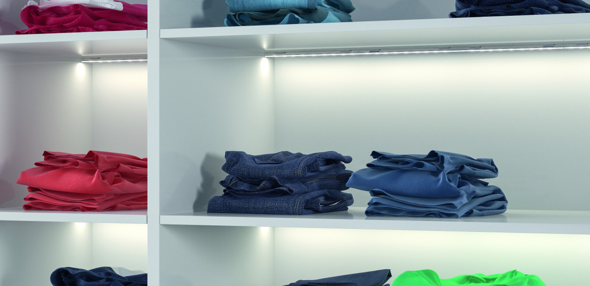Projektując garderobę, musimy również mieć na uwadze oświetlenie. Najlepiej zdecydować się na różne źródła światła, zwłaszcza w większych garderobach, które zajmują całe pomieszczenie i gdzie standardowe oświetlenie główne może okazać się niewystarczające. – Wychodzimy naprzeciw potrzebom i oferujemy szereg rozwiązań, które sprawdzą się w każdej garderobie i szafie. Możemy np. zamontować taśmę LED w drążku ubraniowym, w profilu szufladowym lub profilu, który pozwoli stylowo doświetlić wnętrze szafy – mówi Kinga Przymuszała i dodaje, że światłem możemy sterować na różne sposoby, np. przy pomocy przełączników mechanicznych, sensorowych, czujników ruchu, a także bezprzewodowo, za pomocą pilota, przełączników ściennych lub poprzez bezpłatną aplikację Hafele Connect Mesh na smartfonie czy tablecie.