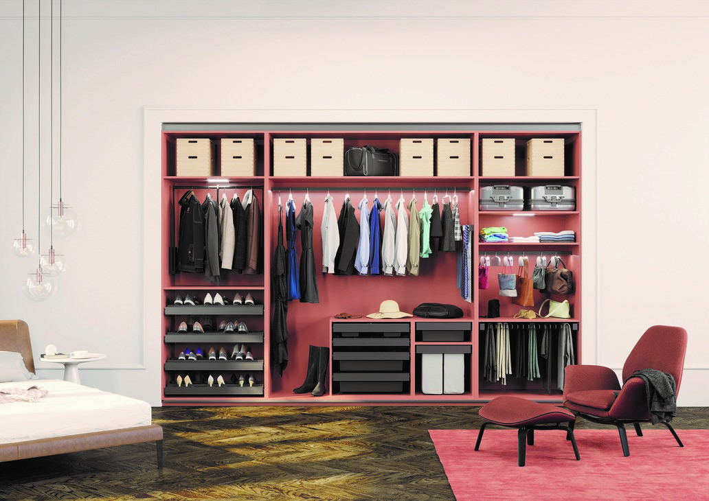 System DressCode może być montowany w garderobie zamkniętej lub otwartej, tzn. takiej z frontami drzwiowymi lub bez. Zapewnia on elastyczność w projektowaniu i pozwala na dopasowanie poszczególnych elementów do każdej przestrzeni – tej dużej, ale i tej mniejszej również. Dodatkowo można go spersonalizować, np. montując więcej półek na buty lub decydując się na organizery na krawaty i paski. – Beznarzędziowy montaż sprawi, że sami, bez dodatkowej pomocy, będziemy mogli modyfikować system DressCode, dopasowując go do naszych potrzeb – mówi Kinga Przymuszała.
