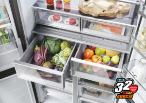 Aby żywność na dłużej pozostała świeża i pełna wartości odżywczych w chłodziarko-zamrażarce zostały zastosowane innowacyjne technologie. Dzięki nim produkty zachowają smak, konsystencję i soczystość do 99% po 7 dniach od umieszczenia ich w lodówce. Specjalna technologia Total No Frost zapobiegnie mieszaniu się zapachów a także sprawi, że we wnętrzu urządzenia nie będzie powstawać szron. Warto zwrócić także uwagę na dwie specjalne szuflady do bezpiecznego przechowywania owoców i warzyw, a także dwie szuflady My Zone, które pozwalają dostosować temperaturę na trzech poziomach 0, 2 lub 5°C w zależności od potrzeb. W lodówce znajduje się także strefa Swich Zone, która pozwala na zmianę chłodziarki w zamrażarkę lub odwrotnie i ustawienie temperatury w zakresie od -20°C do +5°C . Wszystkie produkty umieszczone w lodówce będą zawsze doskonale widoczne, ponieważ w całym wnętrzu urządzenia znajduje się przyjazne dla oczu oświetlenie ledowe Daylight.