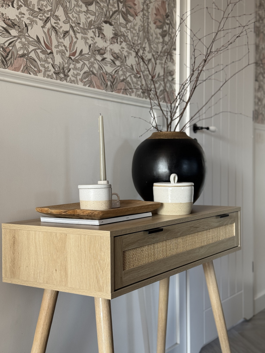Konsola z dużą szufladą to wszechstronny mebel, który doskonale sprawdzi się w przedpokoju, salonie czy sypialni. Minimalistyczny design stanowi doskonałe tło dla dekoracji typowych dla stylu – luster w plecionych ramach, wazonów z suszonymi trawami czy makram. Praktyczna szuflada pomieści niezbędne drobiazgi. Konsola wyposażona jest w dodatkowe zabezpieczenia mocowane do ściany, które zapewniają stabilność.