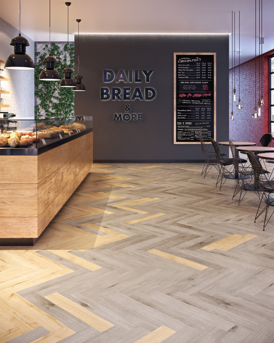 Na koniec ostatni, ale nie najmniej ważny argument za wyborem konkretnej nawierzchni do przestrzeni komercyjnej, czyli estetyka. W tym przypadku nowoczesne panele podłogowe cechują się tak dużą różnorodnością, co pozwala bez trudu znaleźć dekor idealny do konkretnego wnętrza. Zarówno panele winylowe, laminowane, jak i podłogi elastyczne mogą wizualnie przypominać drewno, kamień, płytki, więc inwestor ma pełną swobodę aranżacyjną, bez konieczności wyboru między kwestiami funkcjonalnymi a wizualnymi.