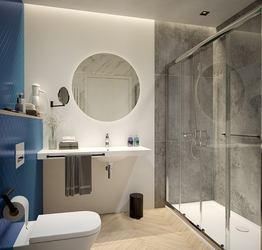 Pamiętajmy więc, że decydując się na łazienkę w kolorze granatowym zyskujemy ogromne możliwości aranżacyjne. Kolor ten jest na tyle wdzięczny, że nie tylko daje możliwości aranżacji przestrzeni w oczekiwanym przez nas stylu, ale także nie zamyka możliwości jego zmiany w przyszłości, bez konieczności przeprowadzania gruntownego remontu. Granat świetnie wpisze się wiec bowiem nie tylko w styl glamour – łączony z drewnem doda wyrazistości stylowi boho, zaaranżowany w przestrzeni eklektycznej dopełni jego różnorodność, a wzbogacony o uniwersalne dodatki w stonowanych barwach pięknie dopełni styl klasyczny. Jeśli więc poszukujesz inspiracji na aranżację swojej nowej łazienki rozważ te w kolorze granatu – jesteśmy pewni, że będzie Ci towarzyszyć wiele sezonów.