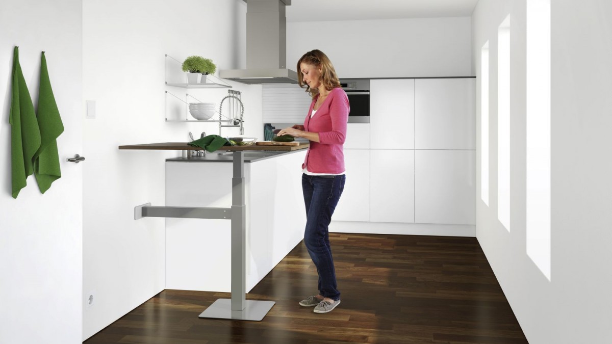 Samodzielnie wykonany element wyposażenia domu to coraz bardziej modne zjawisko. Dlatego modułowość i mobilność to ważne cechy produktów. Jeśli posiadamy w kuchni jakąś wnękę, nawet niewymiarową, np. zbyt płytką lub zbyt głęboką, w której nie mieszczą się tradycyjne zabudowy, to przy użyciu prowadnic do indywidualnych konstrukcji możemy stworzyć oryginalną szafę na elementy potrzebne np. do pracy czy na dokumenty. Uzyskamy w ten sposób wysuwany z szafki sprytny schowek. W nowoczesnej, mobilnej kuchni, świetnie sprawdzi się stół ERGO-Agent, który umożliwia indywidualne dostosowanie kuchni do swoich potrzeb. To bardzo funkcjonalne urządzenie można dołączyć do dowolnej ściany lub mebli. Płynnie zmieniana wysokość może być dostosowywana do wykonywanej czynności. W ten sposób Twoja kuchnia podąża za Tobą i co najważniejsze – zapewnia Ci doskonały komfort pracy!