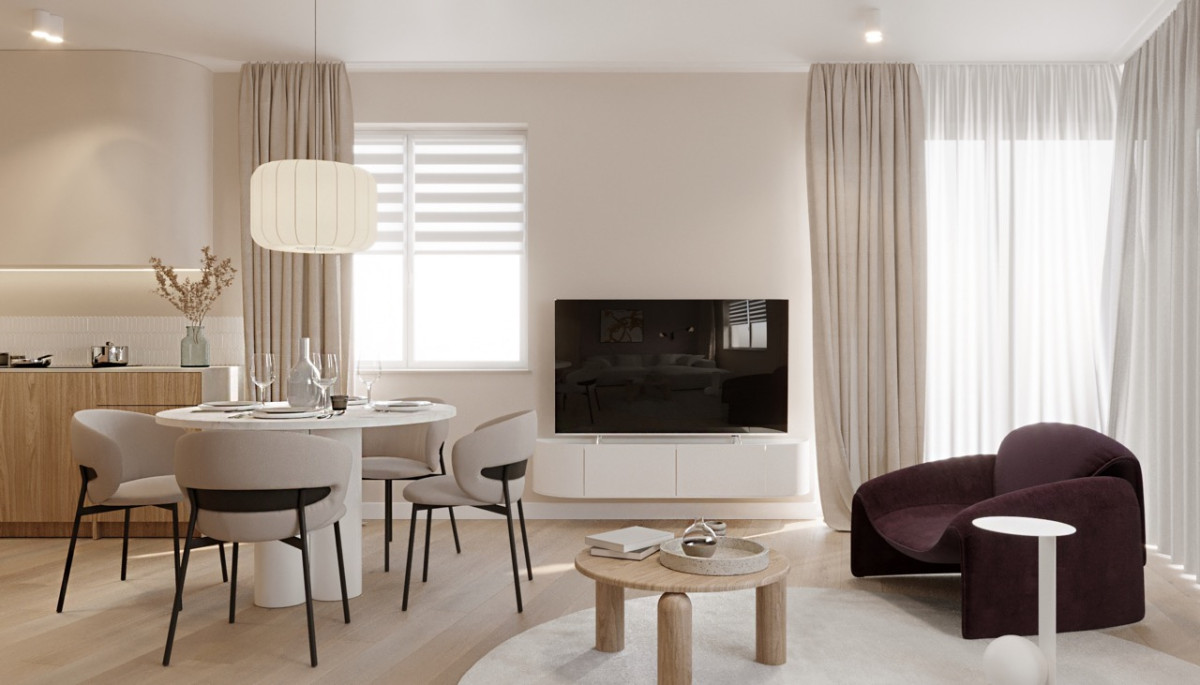 Stonowane kolory, naturalne materiały oraz oble formy mebli charakteryzują rodzinny apartament w Mławie. Tym jednak, co go wyróżnia, jest sposób w jaki zostały skomponowane we wnętrzu i podporządkowane konkretnym funkcjom. Za sprawą architekt wnętrz Weroniki Budzichowskiej z pracowni To Be Design typowe dla stylu japandi elementy wystroju nabrały niezwykłej elegancji doprawionej szczyptą luksusu.