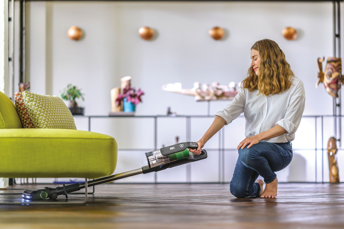 HF9 posiada wyświetlacz LED klasy premium i intuicyjny panel sterowania. Wszystkie niezbędne informacje będą w zasięgu ręki: ustawienia trybu i czas pracy oraz poziom naładowania baterii. Wyjmowany akumulator litowo-jonowy może być ładowany bezpośrednio w odkurzaczu lub oddzielnie, tak prosto jak telefon. W każdej chwili można zaparkować odkurzacz, a samodzielnie stojąca konstrukcja pozwali na postawienie go w dowolnym miejscu. Stabilizacja w pozycji pionowej zapewnia najwyższą funkcjonalność i wygodę. A po sprzątaniu wystarczy tylko jeden przycisk, by cała zawartość pojemnika wpadła prosto do kosza. Dodatkowo nie ma konieczności oczyszczania filtra z nagromadzonego kurzu, ponieważ odpada on samoczynnie. Takie rozwiązanie to gwarancja higienicznego i komfortowego sprzątania bez narażania użytkownika na bezpośredni kontakt z pyłem i brudem.