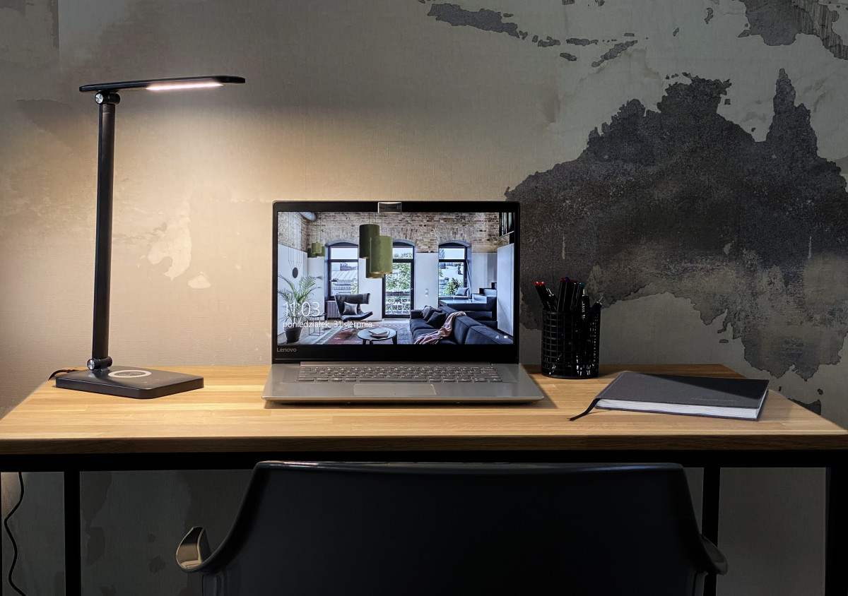 W potrzeby osób pracujących w domowym zaciszu znakomicie wpisuje się lampka biurkowa STYLE LED, z kątem świecenia 100° i strumieniem 390 lm. Włącznik dotykowy z funkcją ściemniania pozwala dowolnie regulować poziom natężenia światła, a temperaturę barwową możemy ustawić w przedziale 3000 – 6000 K. Lampka STYLE LED posiada dwie niezwykle przydatne funkcje: możliwość indukcyjnego ładowania telefonu lub ładowania za pomocą wejścia USB. Dzięki temu nie musimy odrywać się od pracy, a smartfona przez cały czas mamy w zasięgu wzroku. Smukły design sprawia, że lampka ta elegancko prezentuje się zarówno we wnętrzach nowoczesnych, jak i urządzonych w stylu glamour.