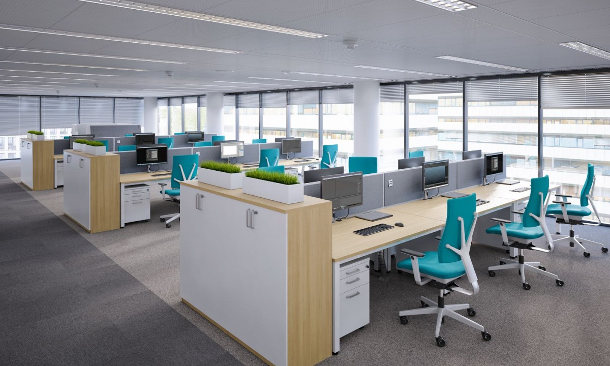 Nowoczesne biura, w większości przypadków zaaranżowane są w zgodnie z zasadami open space. Oznacza to, że stanowiska pracowników ustawione są szeregowo obok siebie w dość dużej, otwartej przestrzeni. Zaletą jest możliwość szybkiej wymiany pomysłów, konsultowania działań, a co za tym idzie szybszych postępów w pracy nad danym projektem. Przeciwnicy, jako wady wymieniają brak prywatności, trudność w wykonywaniu rozmów telefonicznych i hałas. Jednak na wszystkie słabe strony przestrzeni typu open space, specjaliści od wyposażenia wnętrz znaleźli odpowiednie rozwiązania – ich zastosowanie gwarantuje ograniczenie do minimum wyżej wymienionych niedogodności.
