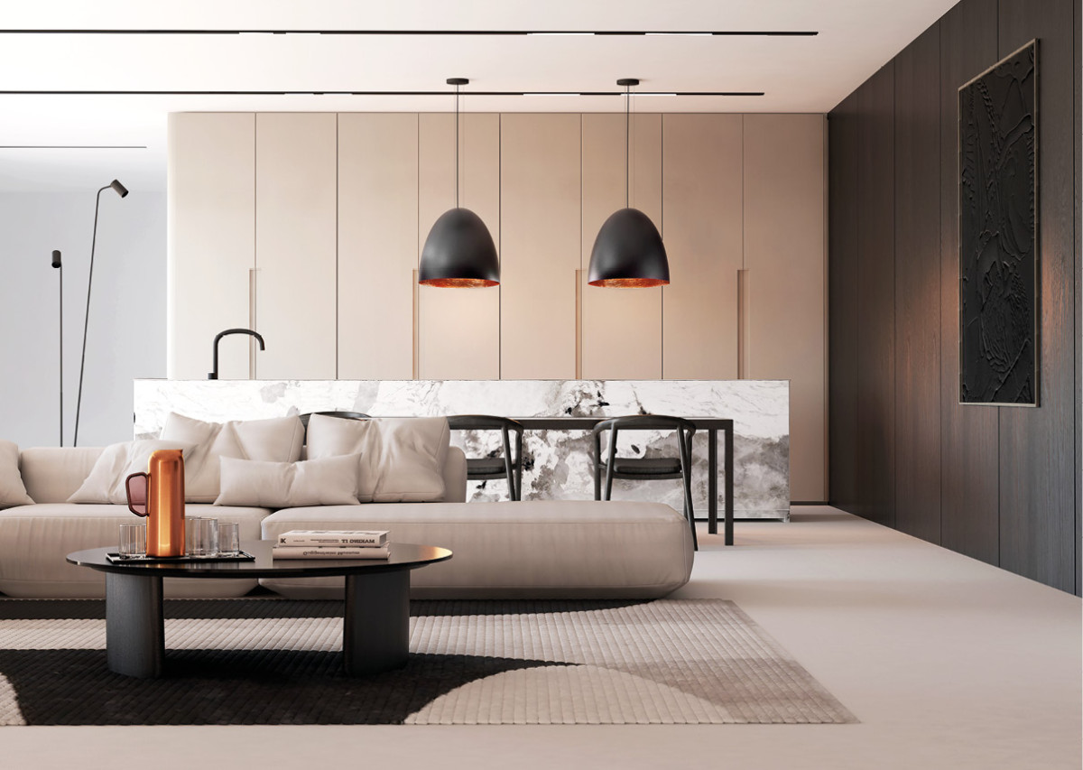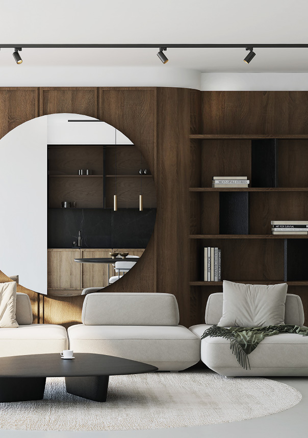 Oświetlenie powinno być przyjazne dla ludzkiego organizmu i dostosowane do naturalnego cyklu okołodobowego. W strefach wypoczynku, czyli w sypialni i salonie, zaleca się wykorzystanie ciepłej barwy (2700-3000 K). Chłodna temperatura barwowa (4000 K) sprawdza się w przestrzeniach roboczych, takich jak home office czy kuchnia.