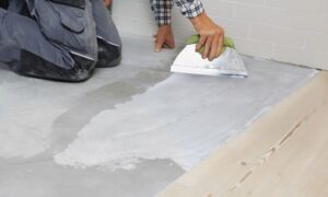 Przy montażu elastycznej podłogi winylowej pierwszym etapem jest oczyszczenie i wyrównanie podłoża oraz aklimatyzacja materiałów. Temperatura powietrza w pomieszczeniu powinna wynosić od 18°C do 26°C, temperatura podłogi – 15°C do 25°C, a wilgotność względna powietrza w przedziale 55-65 %. Odpowiednie warunki powinny być utrzymane przez co najmniej 72 godziny przed, w trakcie i po klejeniu wykładziny. Po równomiernym nałożeniu kleju na przygotowane wcześniej podłoże, poszczególne elementy należy układać szczelnie i bez naprężeń, a następnie dociskać na całej powierzchni za pomocą wałka lub płytki dociskowej. W kolejnym etapie trzeba równomiernie i powoli rozwalcować wykładzinę za pomocą walca segmentowego. W obszarze krawędzi zaleca się użycie ręcznej rolki dociskowej.