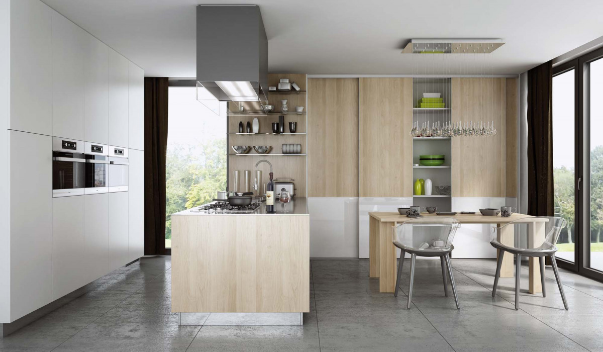 Naturalne, jasne fronty, trochę kamienia i delikatne motywy dekoracyjne. Ta kuchnia z jadalnią robi wrażenie. Fronty wszystkich szafek w białej zabudowie wykonano z otwieraniem na dotyk, przy użyciu zawiasów push to open. Dzięki temu można było zrezygnować z uchwytów i gałek. Tym samym kuchenna przestrzeń stała się oszczędniejsza. Elementem spajającym układ wnętrza jest wyspa na lekko cofniętym cokole. Wyspa to element coraz ważniejszy we współczesnej kuchni. Zamontowano w niej płytę grzewczą i pojemne szafki. Dzięki temu ściany obok pozostały wolne i można było w nich zorganizować mini-spiżarnię i całkiem pojemny schowek. Zamiast typowych uchylnych drzwi zastosowano w tej części pomieszczenia skrzydła w systemie przesuwnym. To ciekawe rozwiązanie, które sprawia, że kuchnia jest przestronniejsza i wygodniejsza do użytkowania. Wykorzystanie mebli na wymiar marki Komandor pozwoliło w pełni zagospodarować przestrzeń. Wyjątkowy akcent w postaci białego odcięcia na frontach pozwala zachować wizualną ciągłość między dwiema oddzielonymi od siebie częściami kuchni.