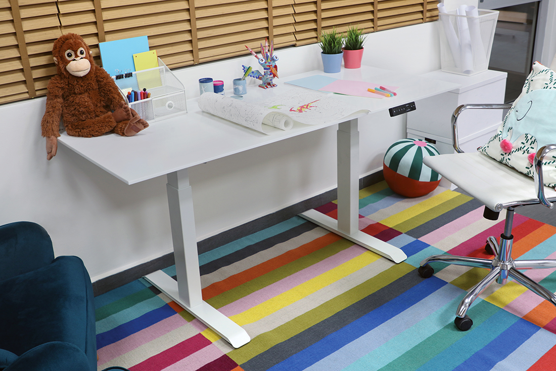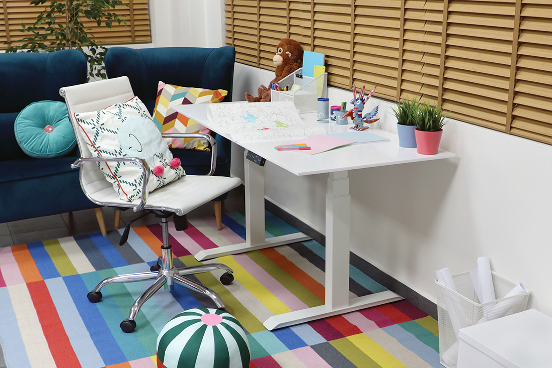 Ale to nie wszystko. W przypadku pokoi dziecięcych, regulowany stelaż elektryczny do biurka umożliwia jego rośnięcie wraz z dzieckiem lub… dziećmi. To również idealne rozwiązanie, jeśli maluchy w różnym wieku dzielą pokój. W zależności od tego, które dziecko w danej chwili się uczy, blat można podnieść lub opuścić, tak by ułatwić zajęcie odpowiedniej pozycji. Bezpieczeństwo podczas regulacji zapewni zaś specjalny system, który zahamuje przesuwanie się blatu, gdy tylko napotka przeszkodę np. rączkę. Obniżać lub podwyższać blat możemy za pomocą prostego w obsłudze panelu sterowania – wystarczy przycisną