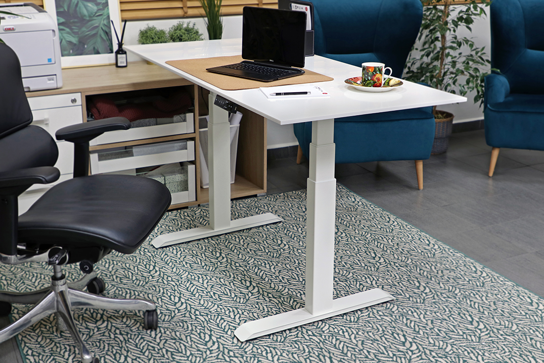 Rozwiązaniem są systemy umożliwiające zmianę poziomu ułożenia blatu – takie jak np. stelaż elektryczny Futuro marki REJS. Pozwala on na regulację wysokości w zakresie 625-1275 mm. Dzięki temu możemy dopasować biurko do konkretnej osoby, jej nawyków i stylu pracy. Przy Futuro możemy siedzieć w standardowym fotelu, ale również na piłce, czy specjalnym siedzisku wymuszającym odpowiednią postawę. Możemy przy nim również… stać. Zalecana przez ortopedów częsta zmiana pozycji nie stanowi żadnego problemu, a dopasowanie mebla (nawet do pozycji stojącej) zajmie dosłownie chwilkę.
