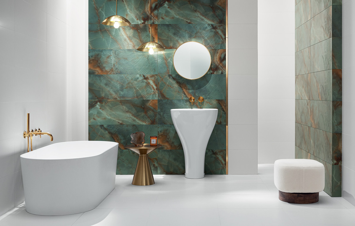 W wiosennej aranżacji wnętrz nie może zabraknąć zieleni. W kolekcji Unit Plus Reef znajdziemy niezwykle interesujący dekor, który powoli, taktownie, nabiera intensywności barw. Nietypowa struktura przyciągają wzrok i pozwala na zaaranżowanie interesującej, minimalistycznej przestrzeni, w której centralną dekoracją będą same płytki. Stonowana kolorystyka odzwierciedla rodzącą się do życia przyrodę, która powoli, taktownie nabiera intensywności.